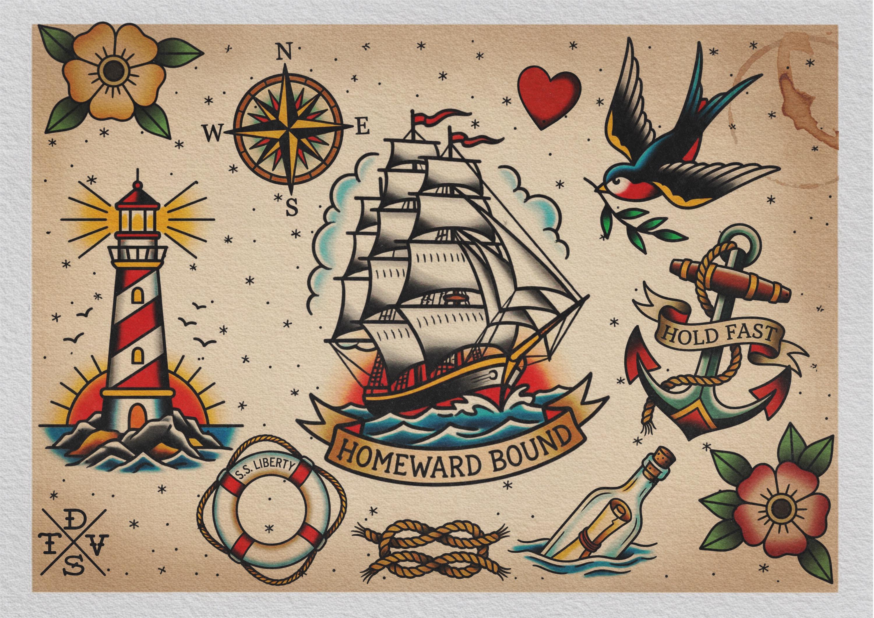 Traditional tattoo art kit, crisp stencil work saved to fit all your needs!