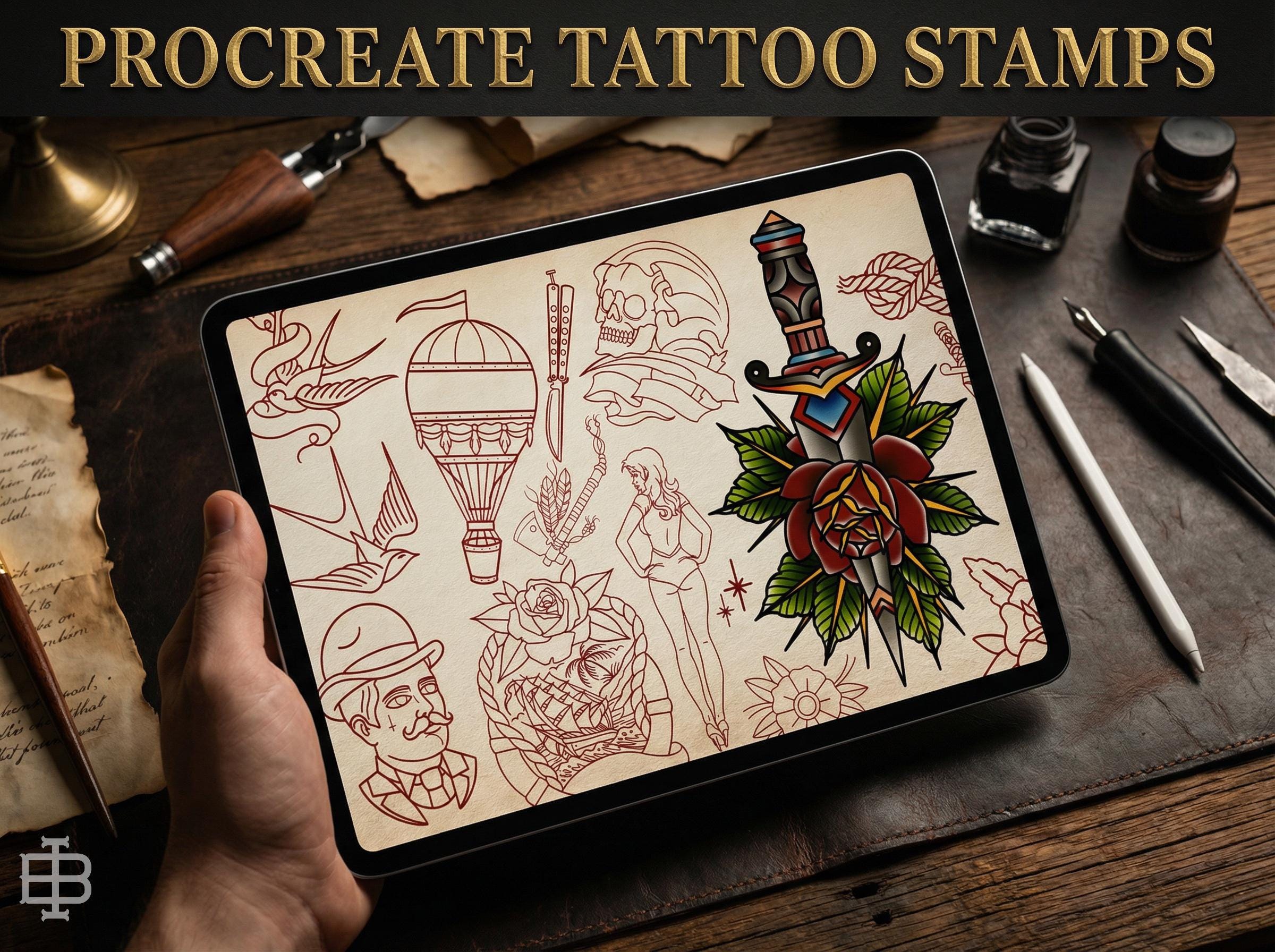Traditional Tattoo Procreate Stamp brushes, Vol. 5, 100 Designs (Digital Download) studio stencils