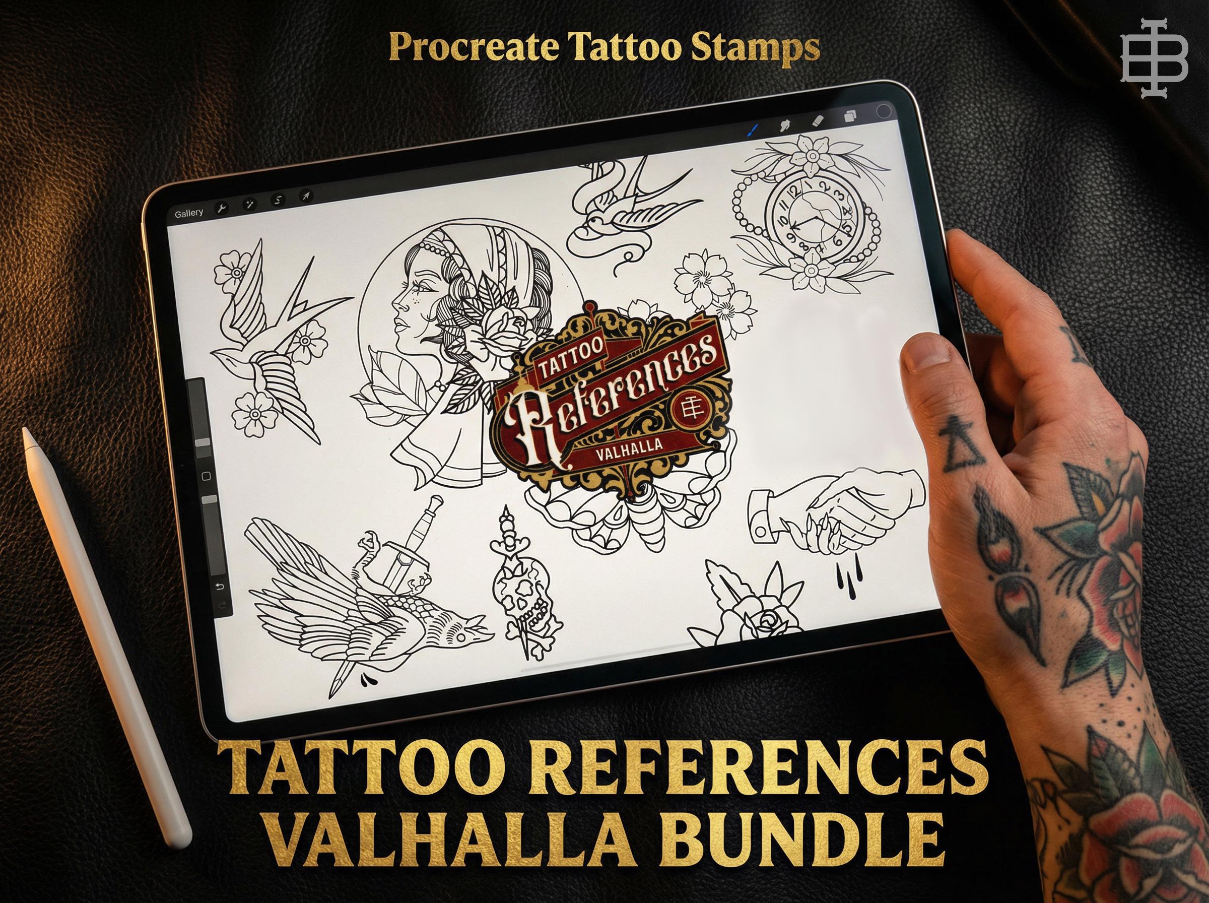 100+ hand drawn tattoo projects for procreate! Perfect for colouring, stencils or inspiration