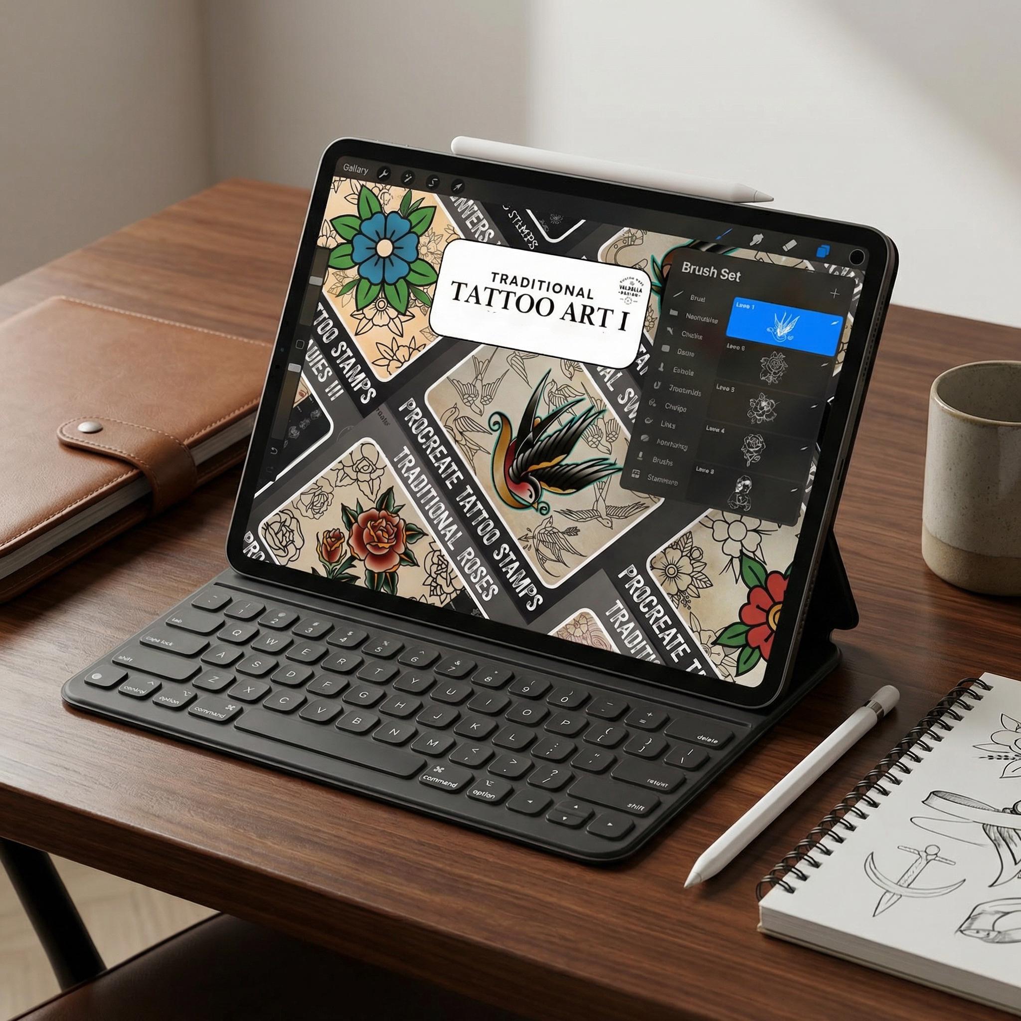 The Traditional Tattoo Artist - 1600+, Procreate & PNG custom made creative design kit!