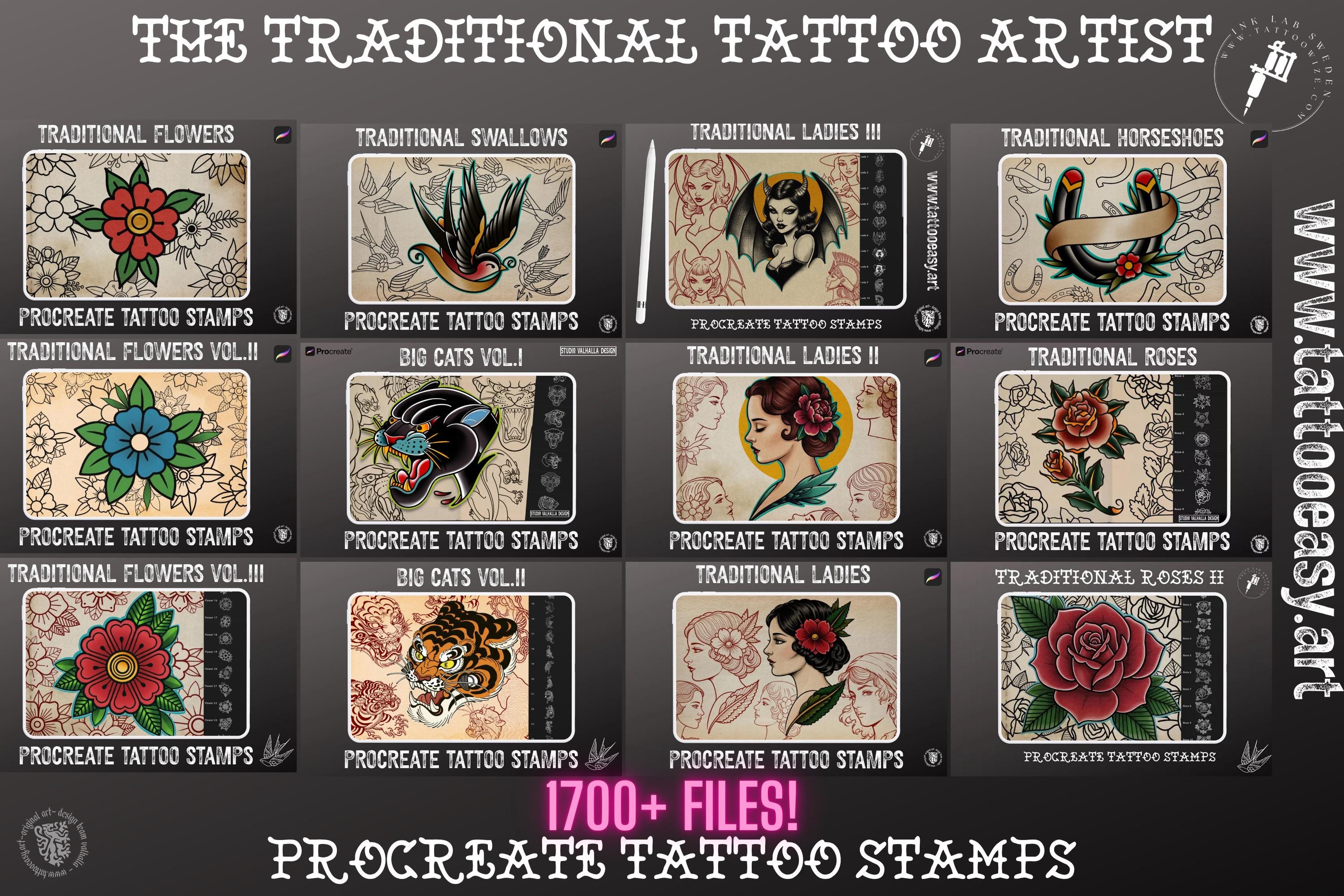 The Traditional Tattoo Artist - 1700+ files, Procreate & PNG custom made creative design kit!