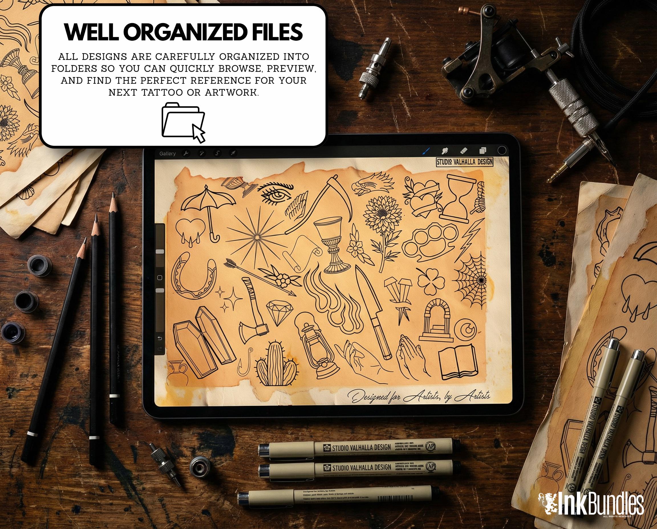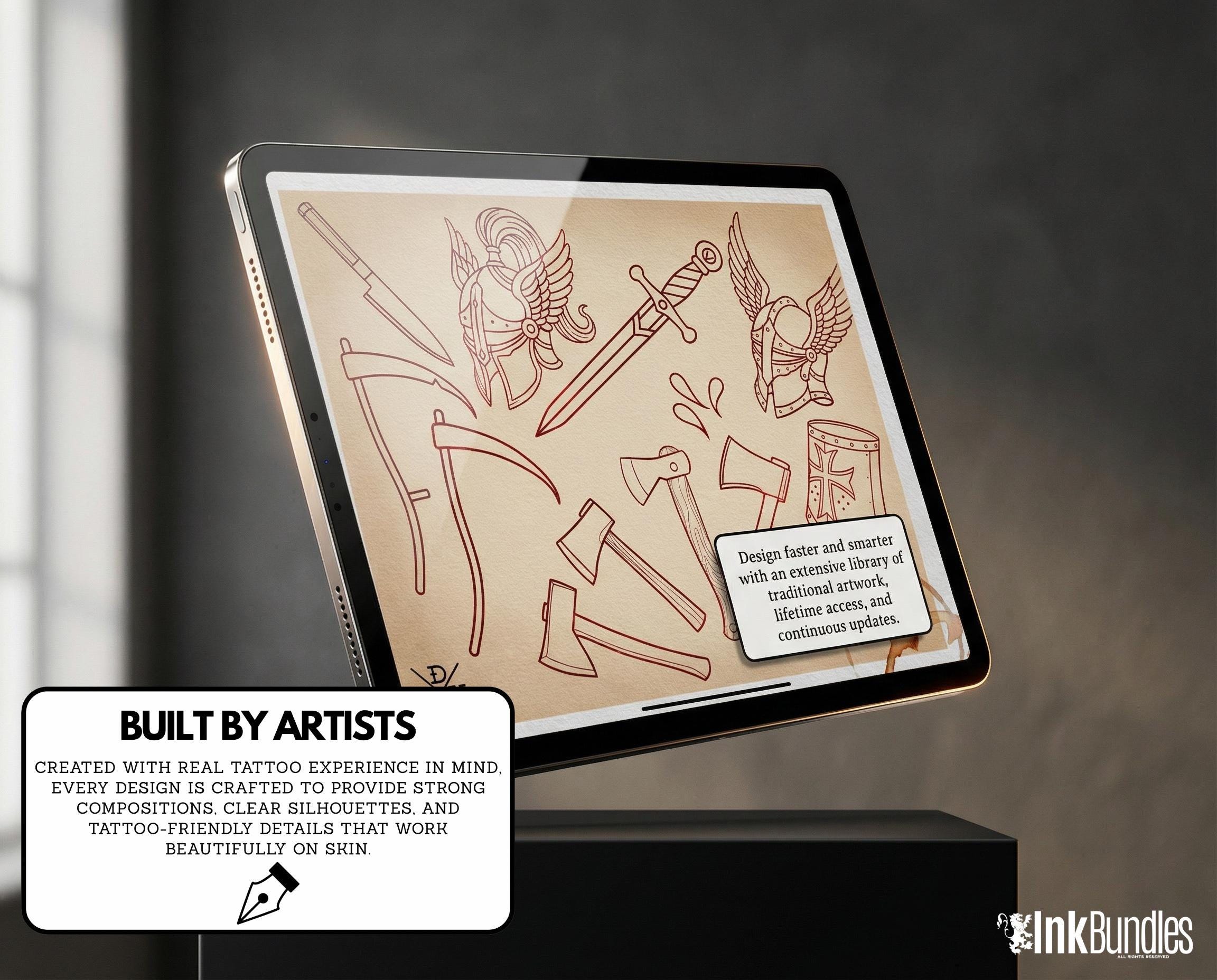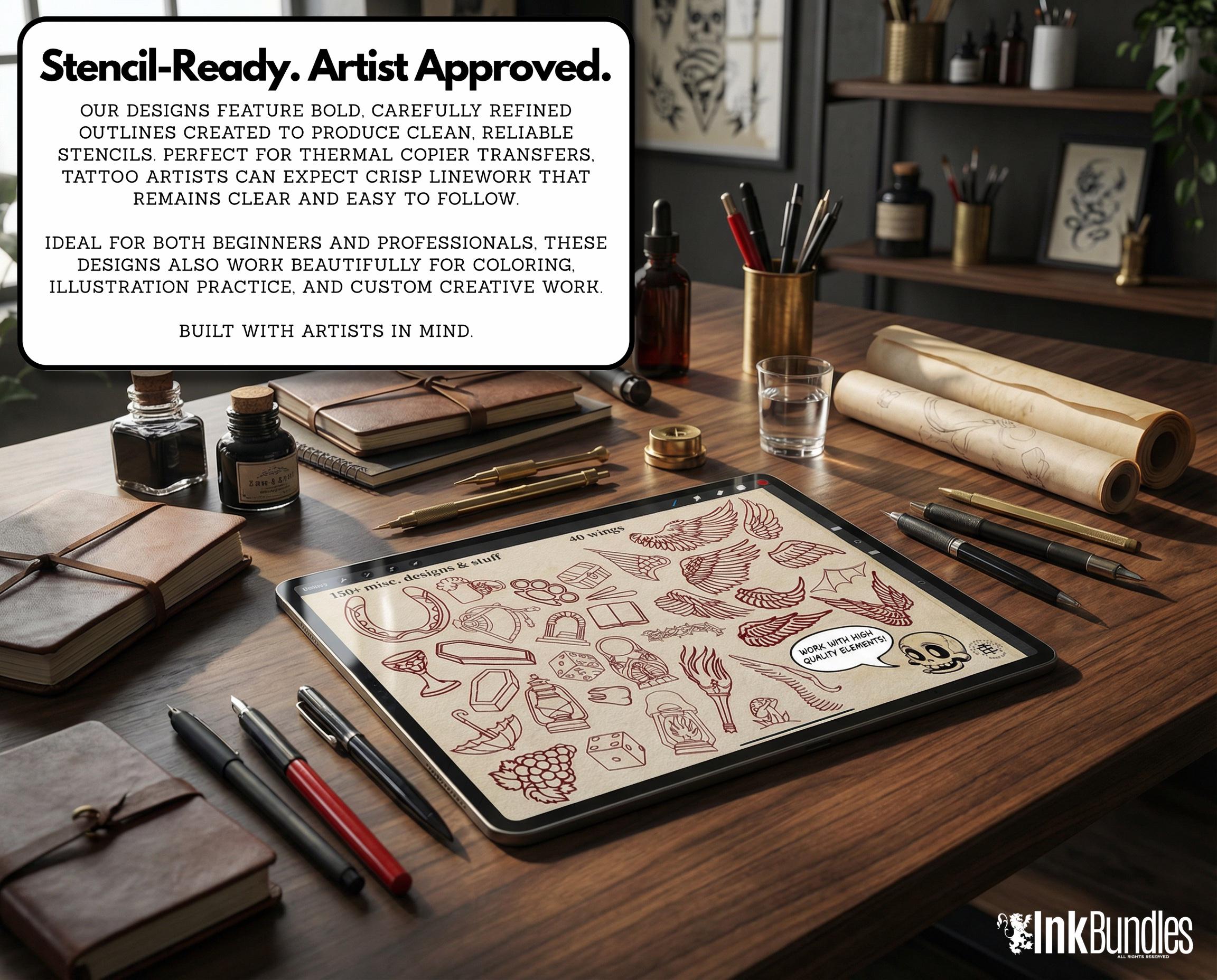 Designed with tattoo artists and digital illustrators in mind, this toolkit helps you build bold, classic tattoo-style artwork inside Procreate. Whether you’re creating flash, sketching concepts, refining linework, or experimenting with American traditional-inspired designs, this pack is made to support your creative process.