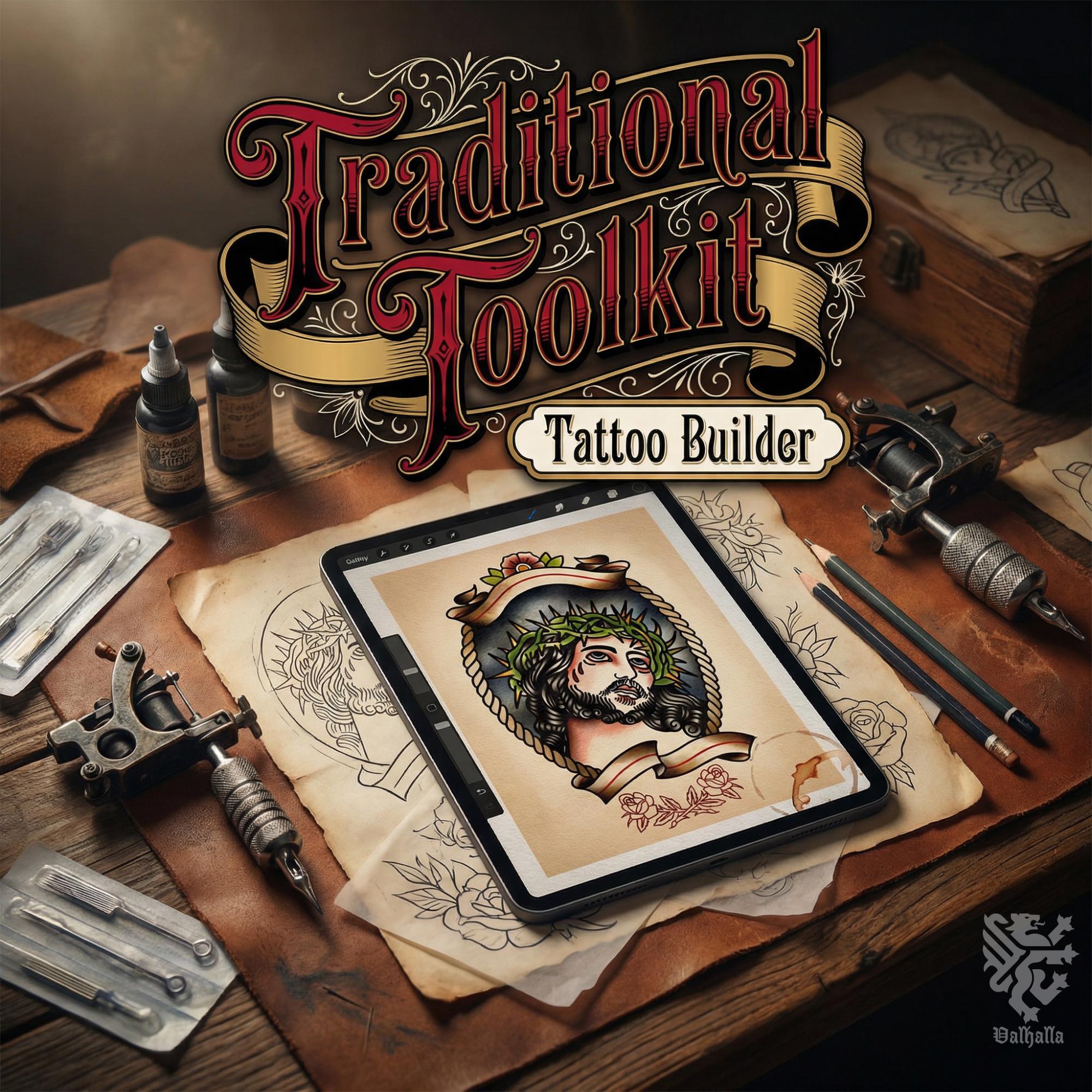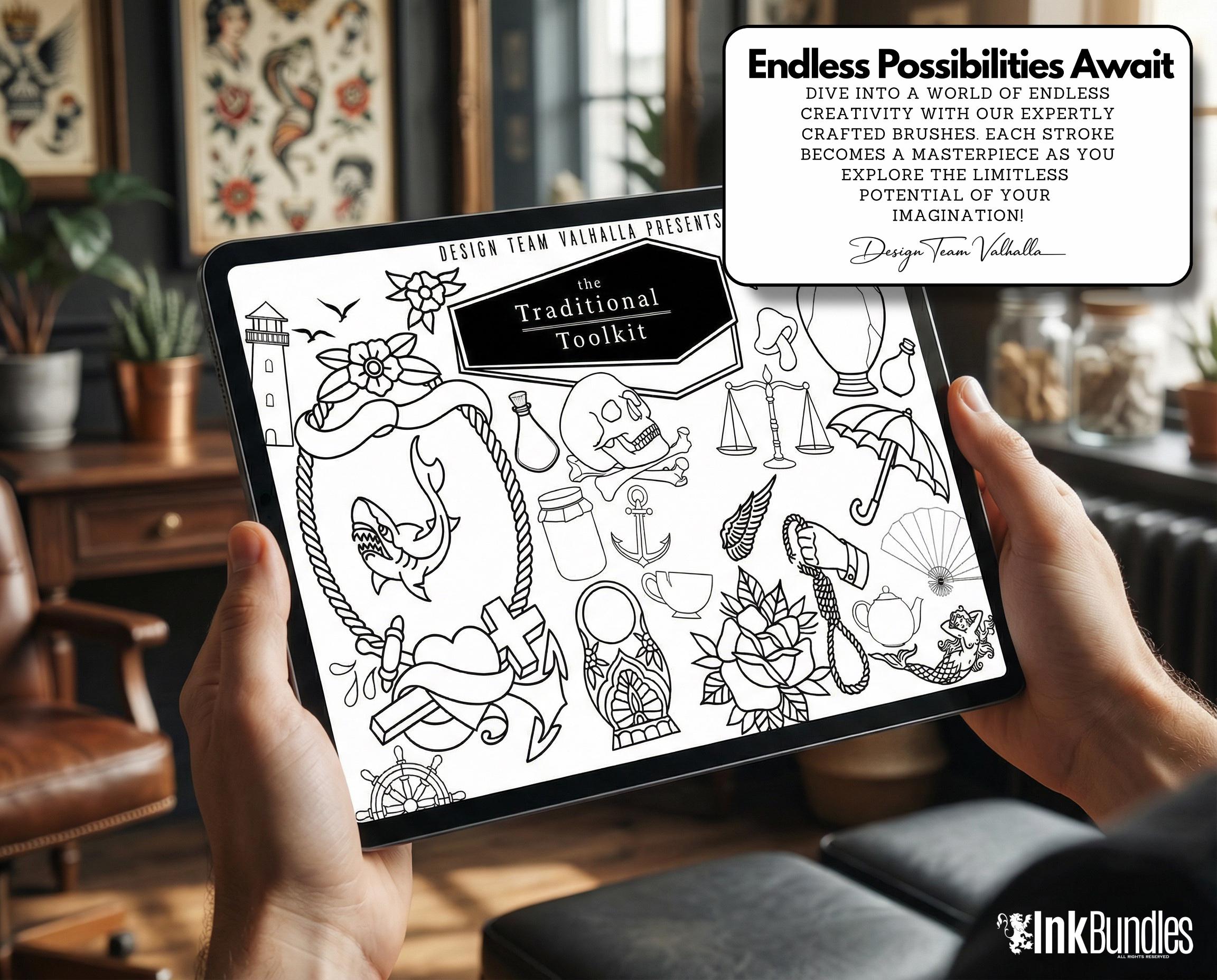 Traditional Tattoo Toolkit for Procreate, Build Your Own Designs, American Traditional Flash Brush Set