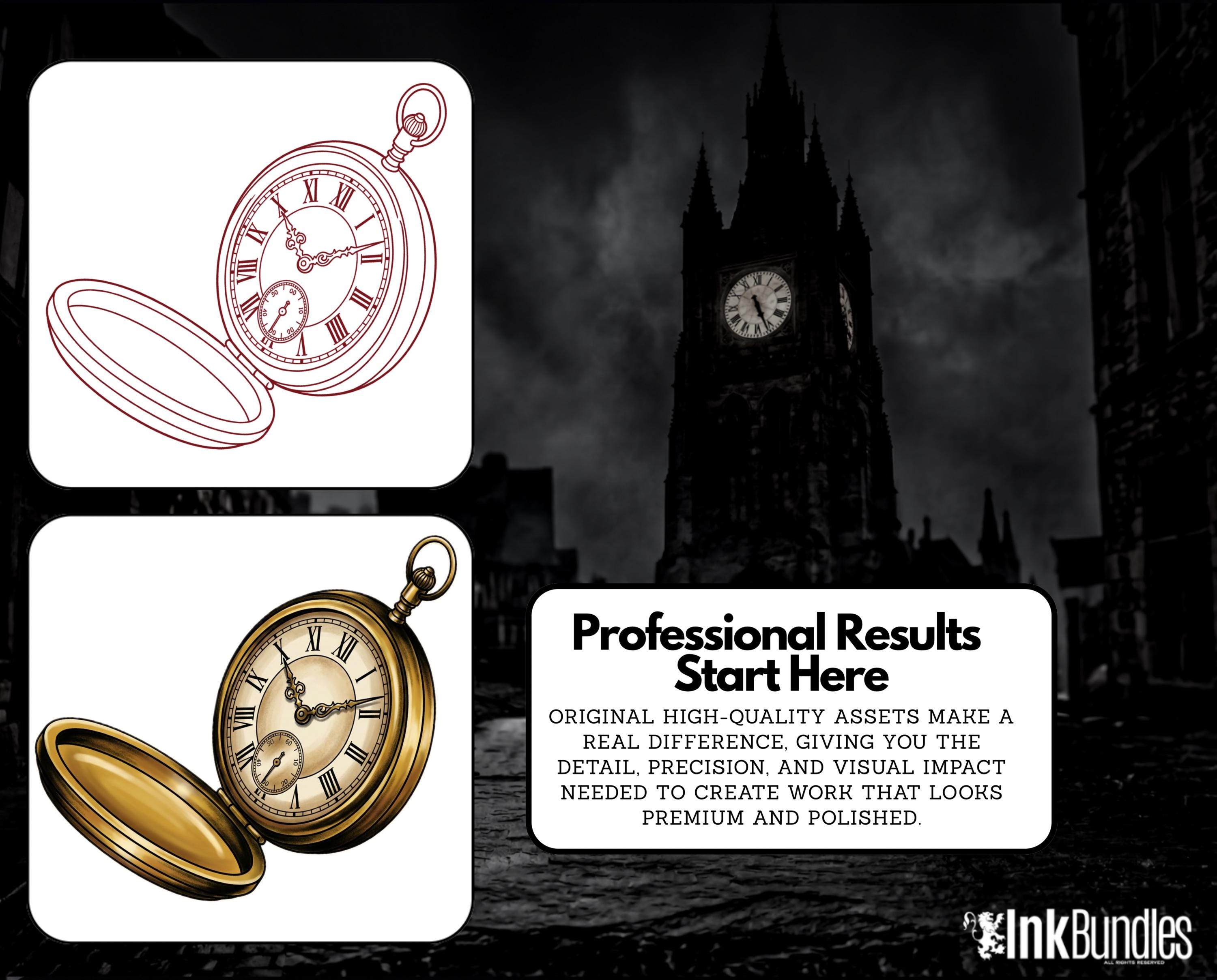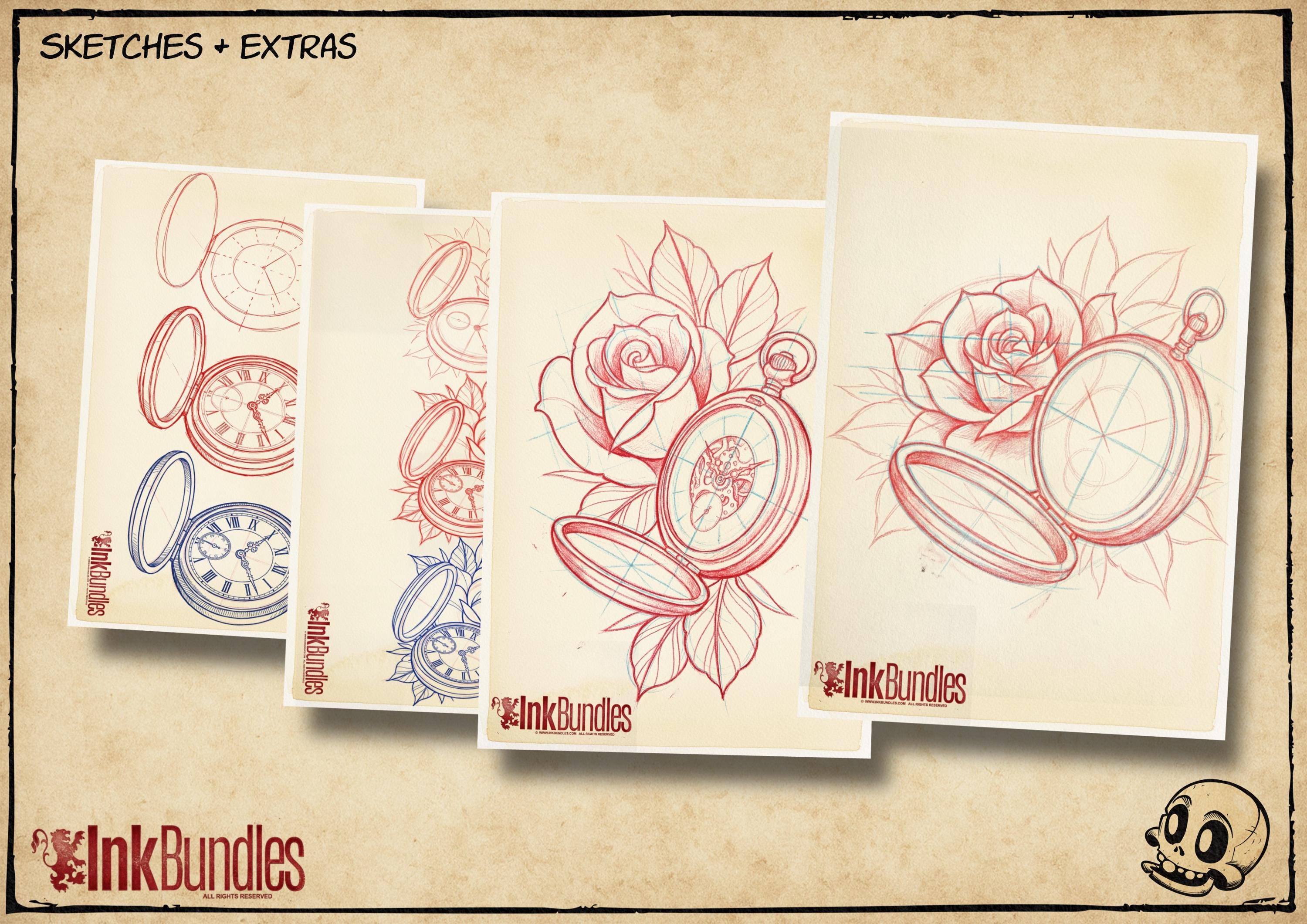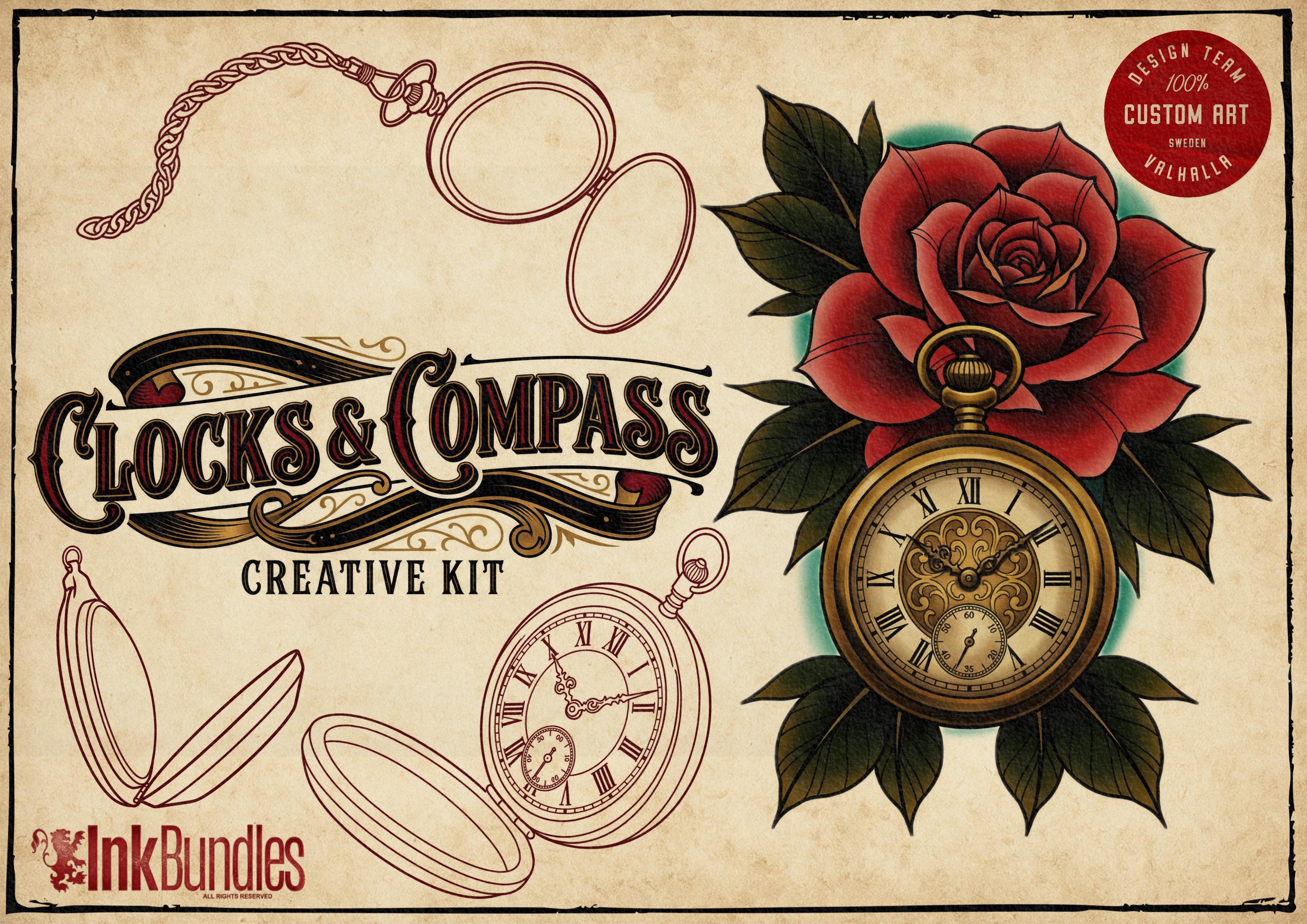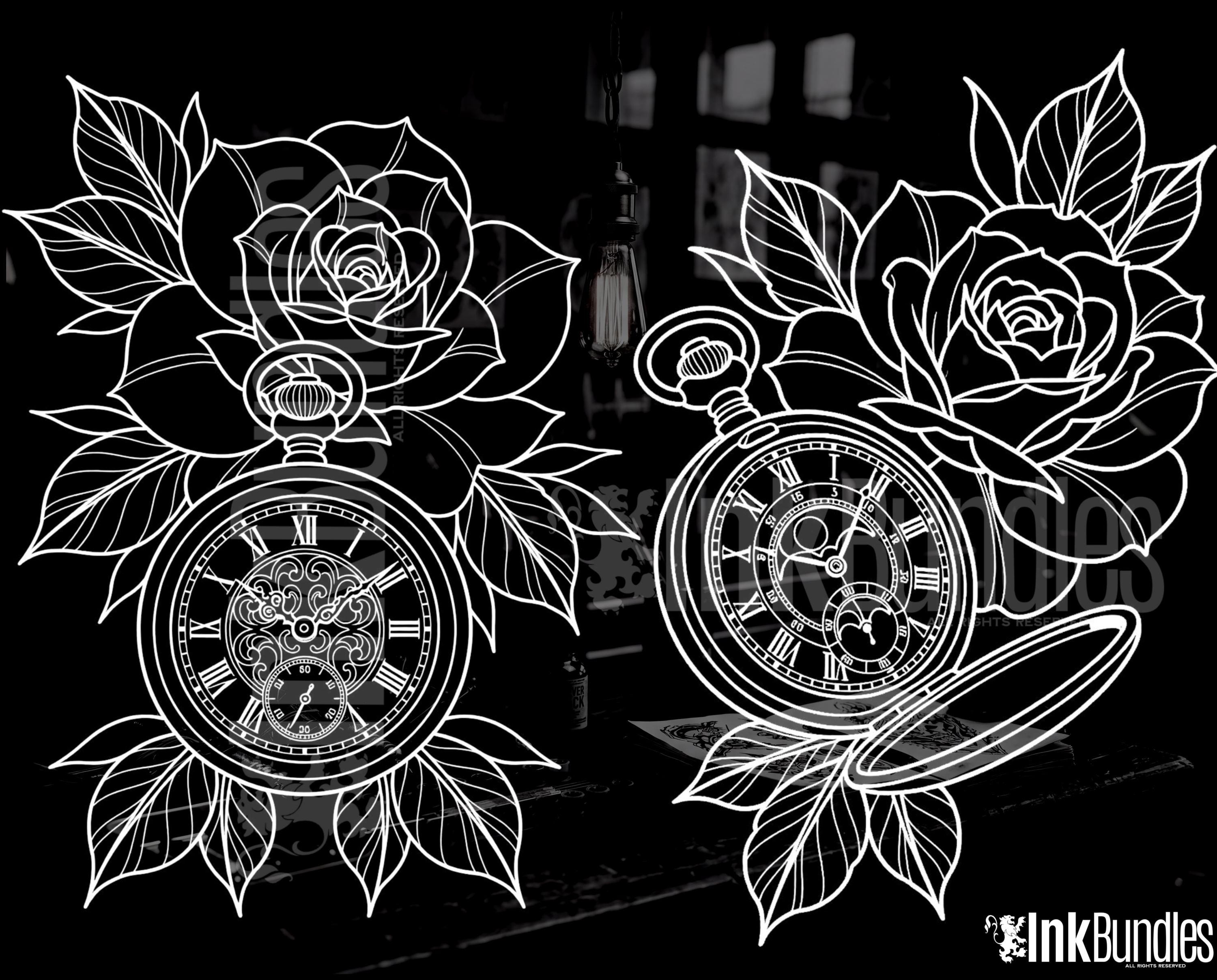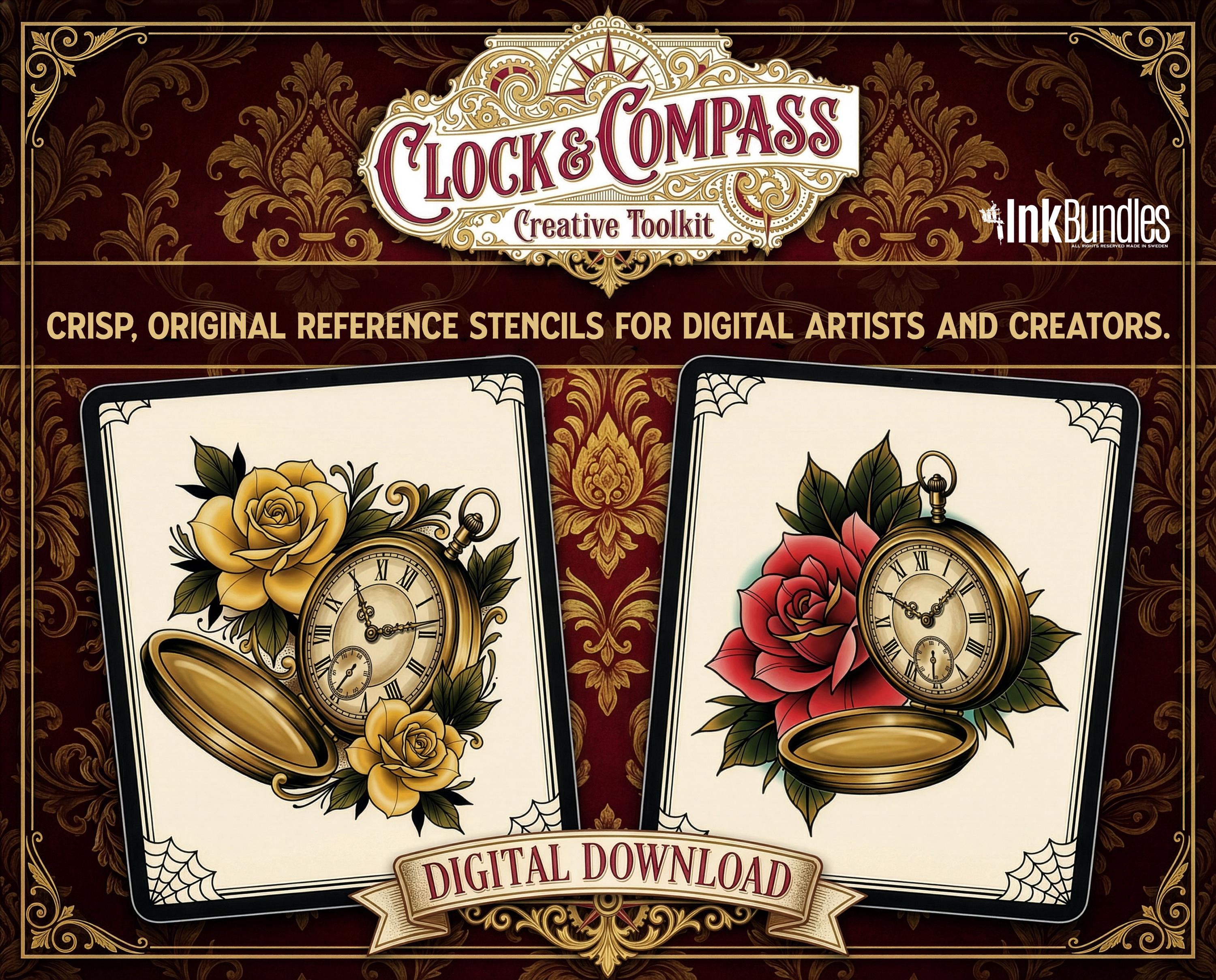 Streamline your design process with this premium Clock, Pocket Watch, and Compass Tattoo Reference Bundle. Finely crafted for professional tattoo artists, digital illustrators, and coloring enthusiasts, these clean, original stencils will help you build flawless timepiece and nautical designs in minutes.