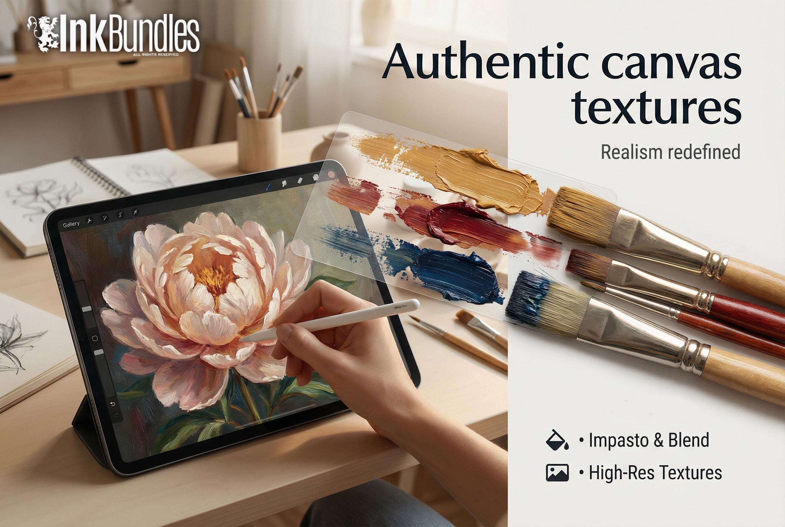 A creative oil kit for Procreate built on custom brushes and canvases