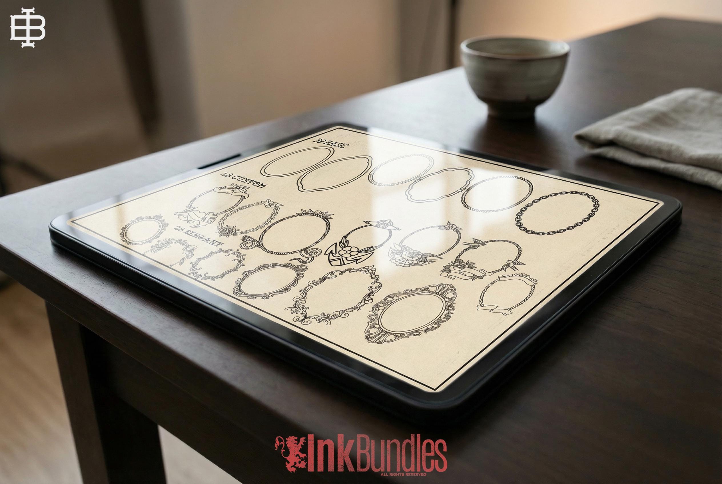 Mixed design kit with traditional, simple, elegant and a couple of heart shaped and round frames ready to be used in Procreate! I also included a folder with some extra flowers and misc stuff that i hope will come in handy / designer