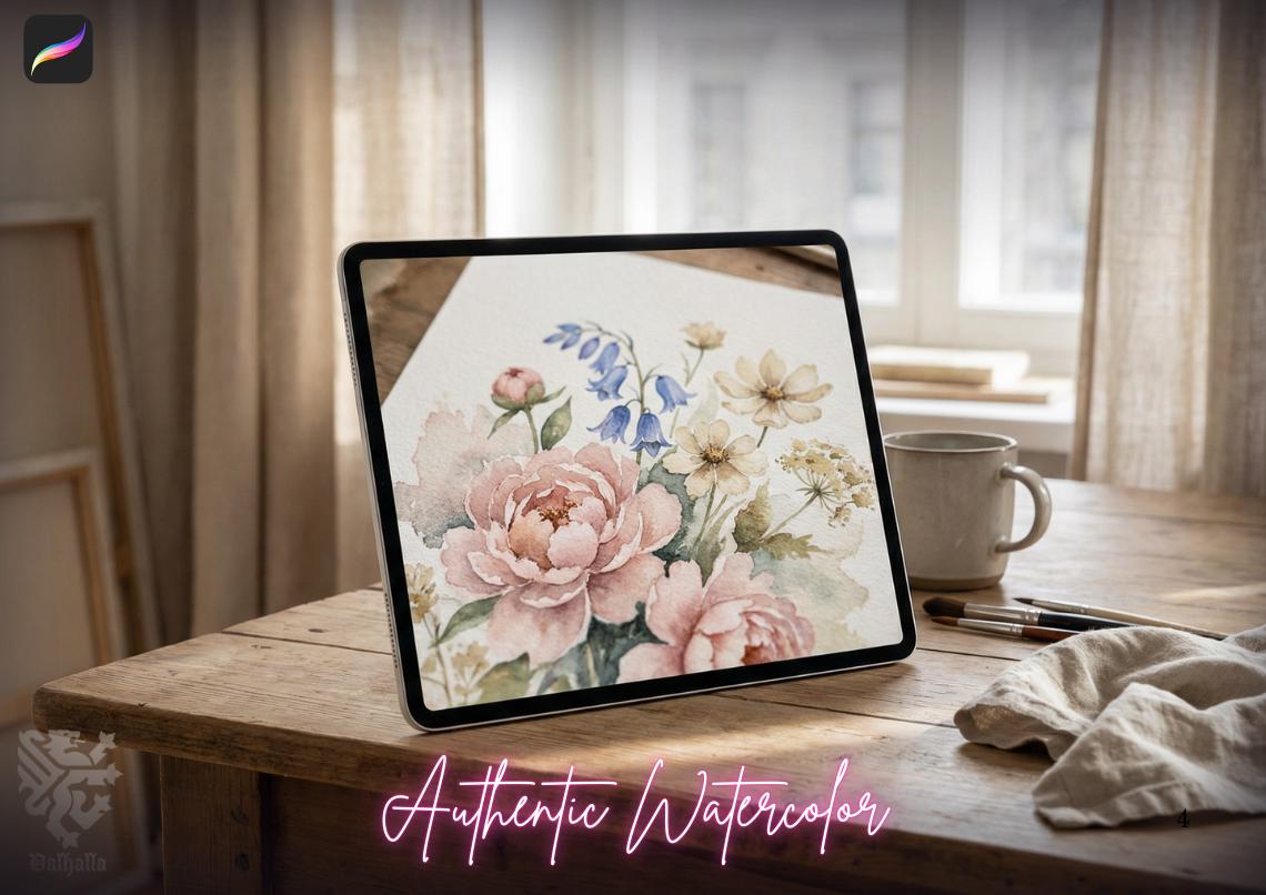 With our bundle, you can seamlessly combine the convenience and versatility of digital tools with the realism and texture of traditional watercolor techniques.