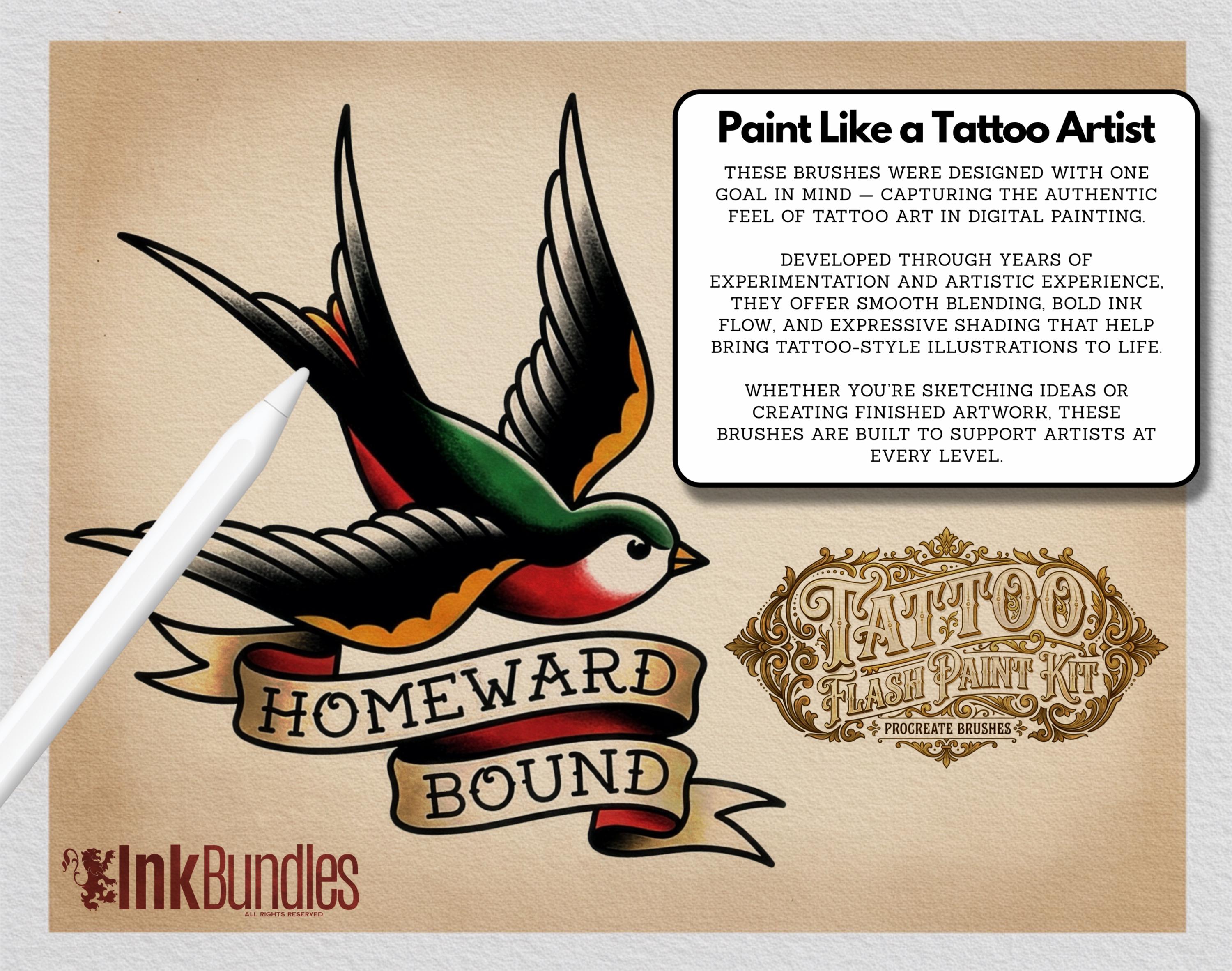 Embrace the power of professional brushes crafted by an experienced designer and tattoo artist.