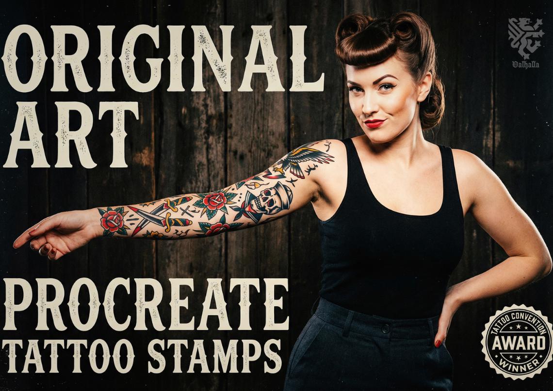 Procreate Tattoo Lettering Kit, Chicano Blackletter Fonts, 1200+ Stamps & Brushes