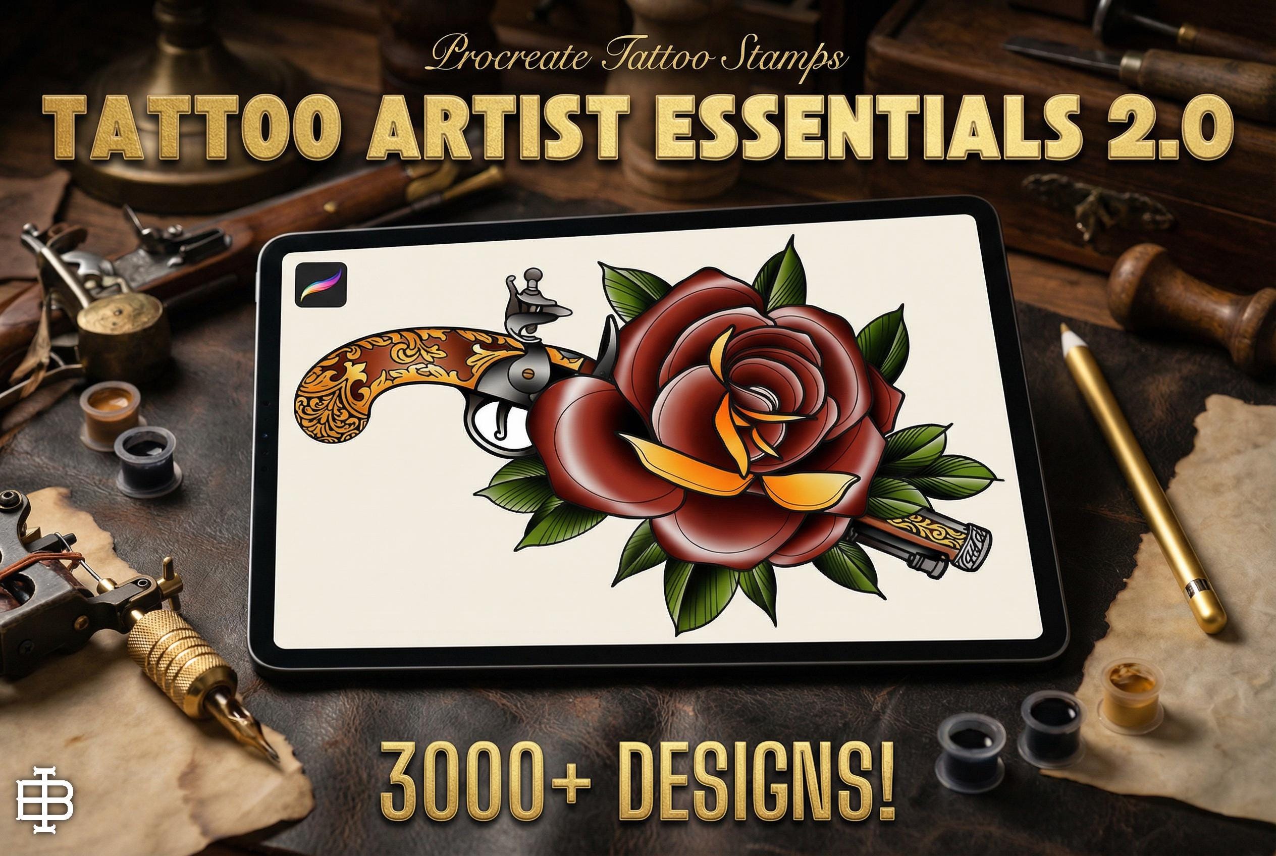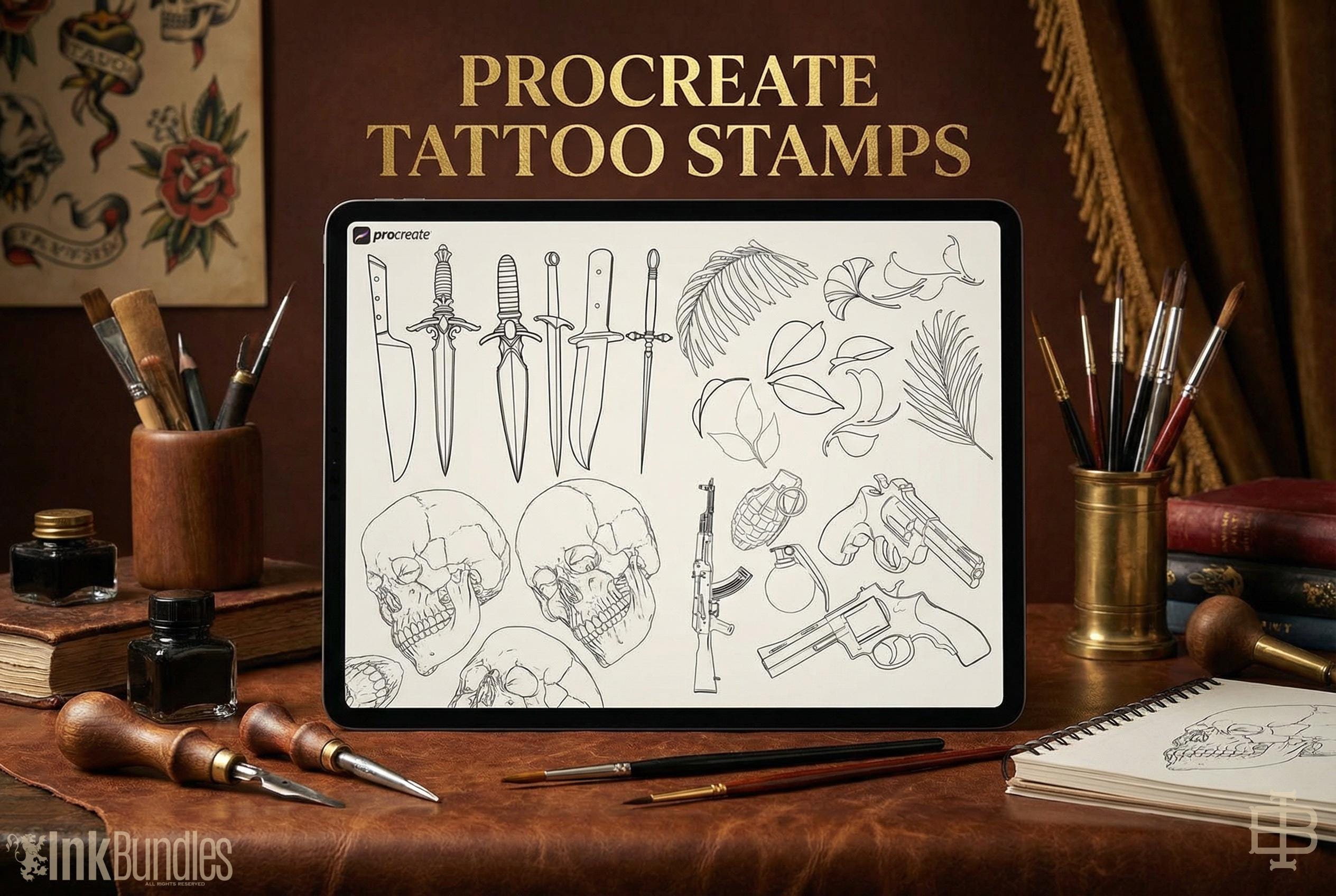 🎨 1100+ Procreate Stamps for Artists & Tattoo Designers