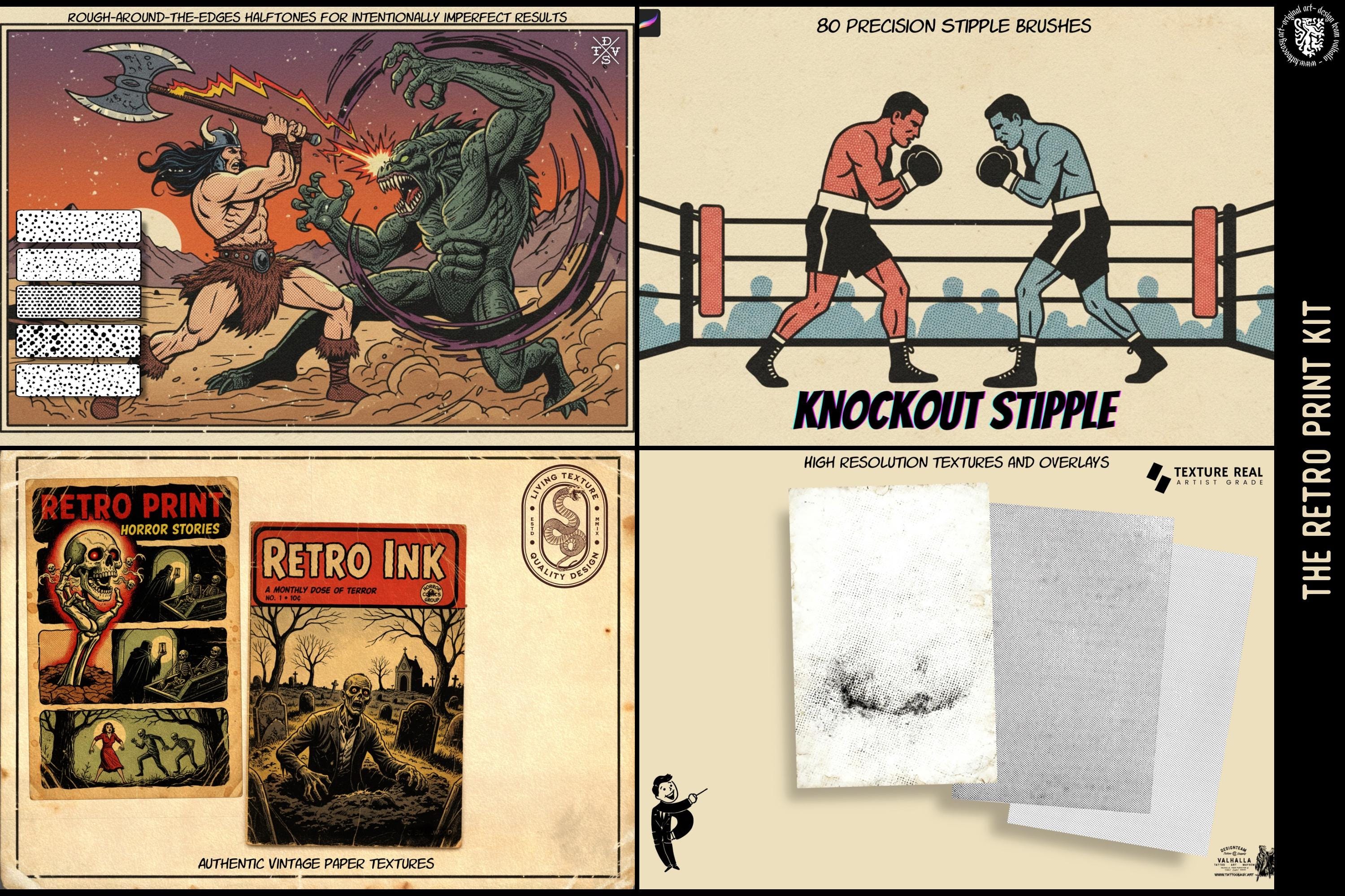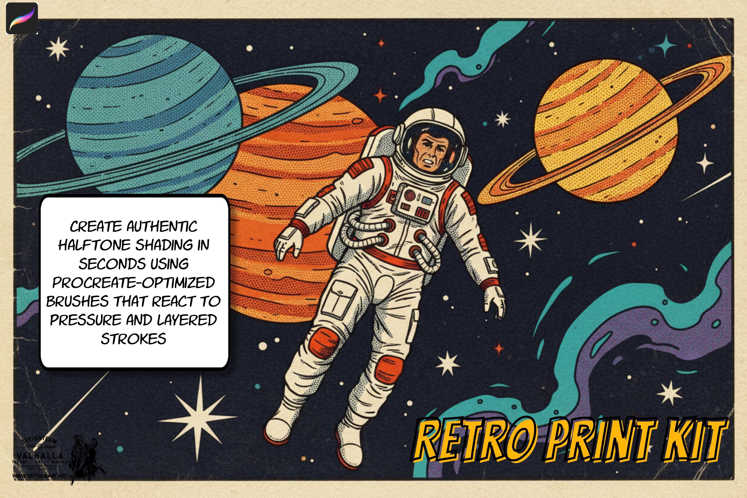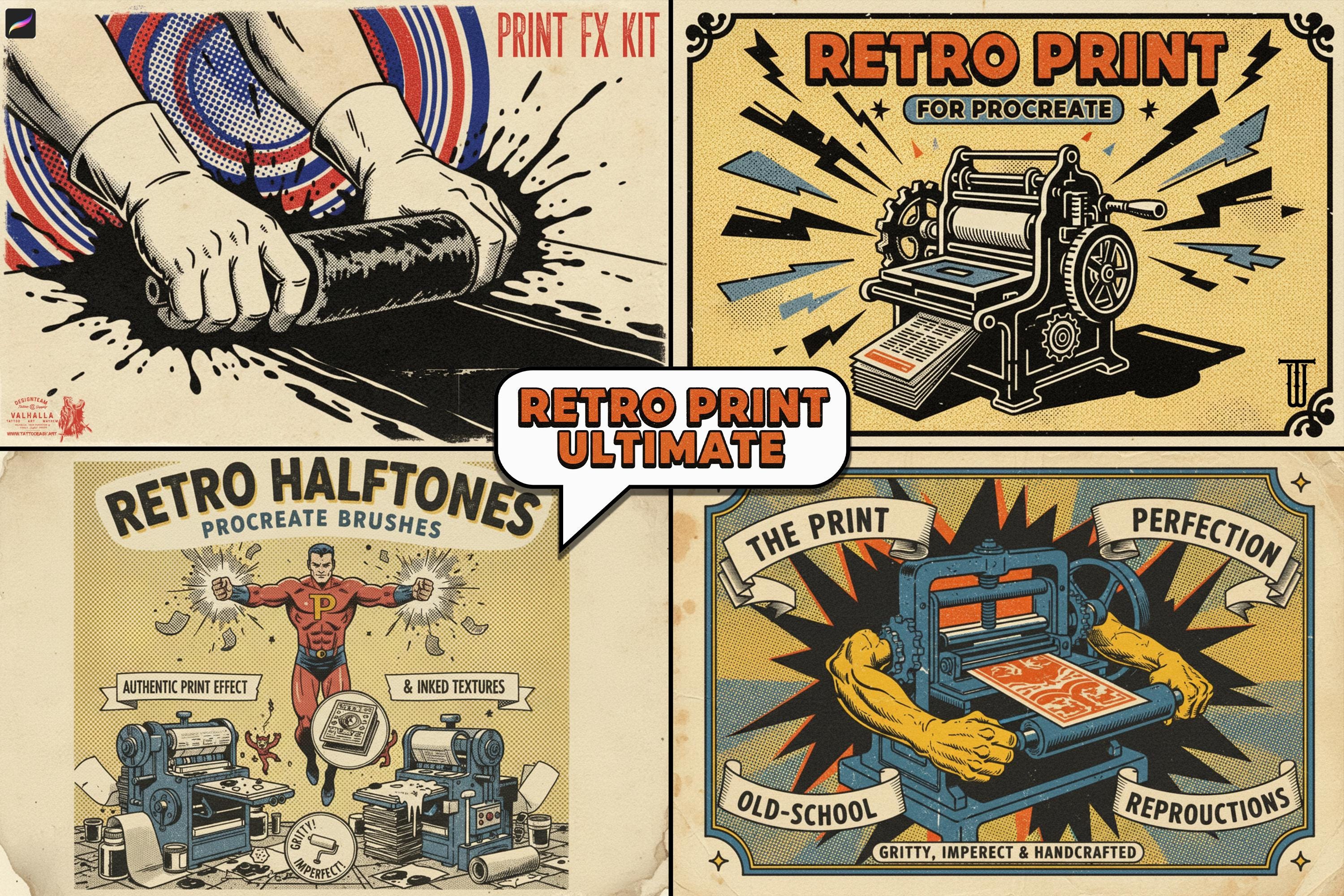 Retro Print Kit – Mid-Century Comics & Print Textures for Procreate 550+ custom built brushes