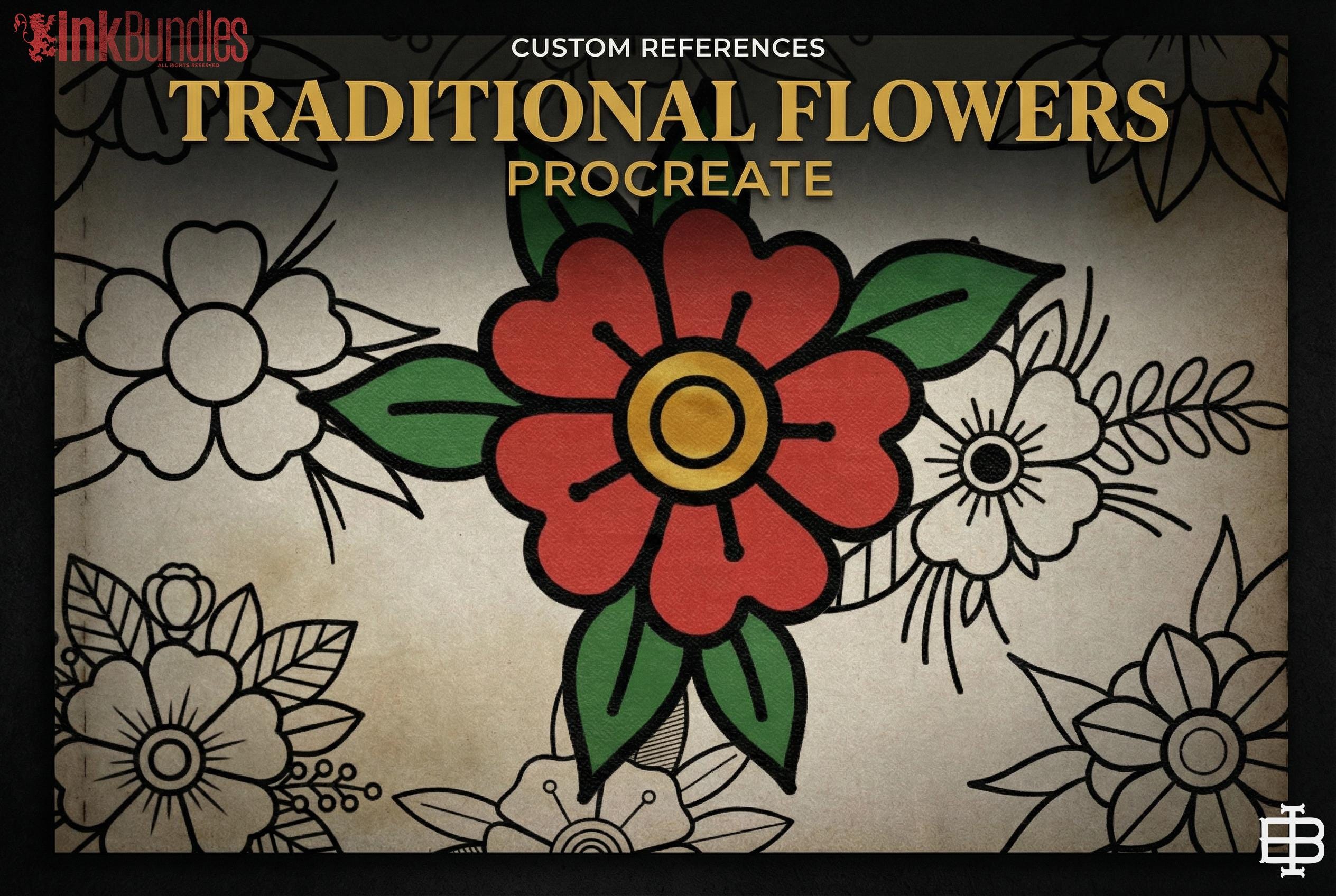 Traditional Tattoo Flowers 120 files – Procreate Stamps | Old School Flower Clipart – PNG, SVG, EPS