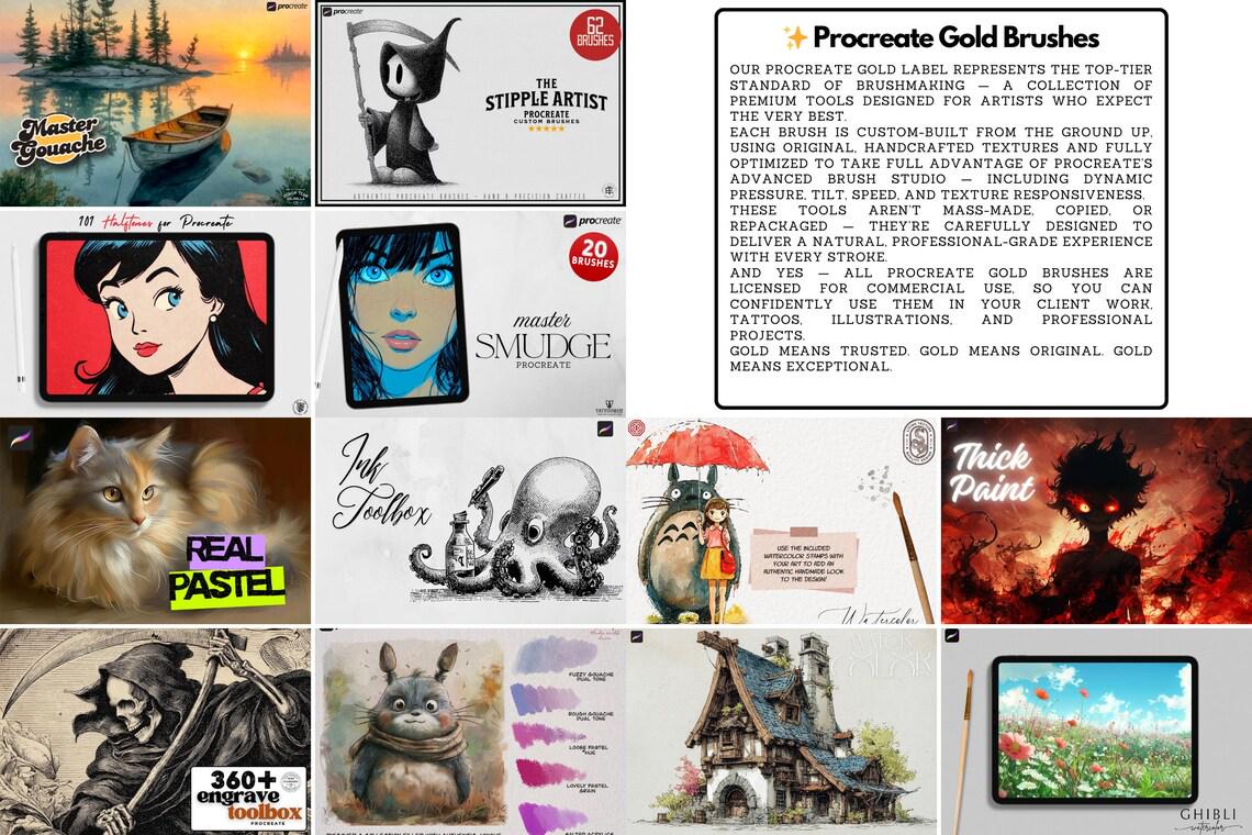 After years of dedication as creators, we’ve crafted the original all-in-one Procreate bundle—a complete library of over 14.000 custom-built assets designed to deliver every time. No filler, no duplicated brushes, no copyright-risked content—only authentic, handcrafted tools you can use for personal and commercial work with confidence.