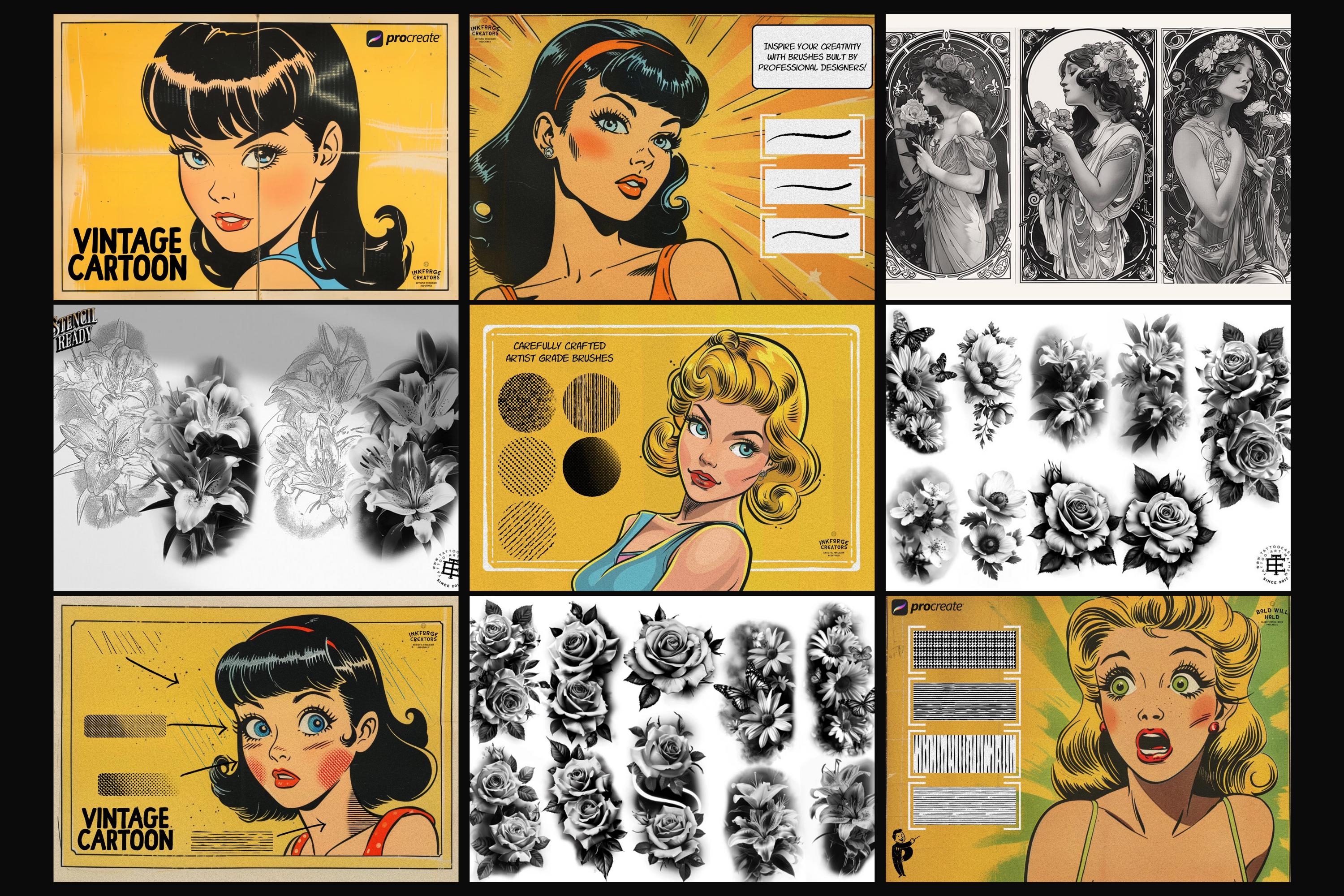 Inside you’ll find oil, ink, pencil, charcoal, hatching, gouache, stipple, smudge, and comic brushes, along with Japanese tattoo references, animal references, halftones, textures, and color palettes — all handcrafted by our design team to deliver the highest level of quality, precision, and control.