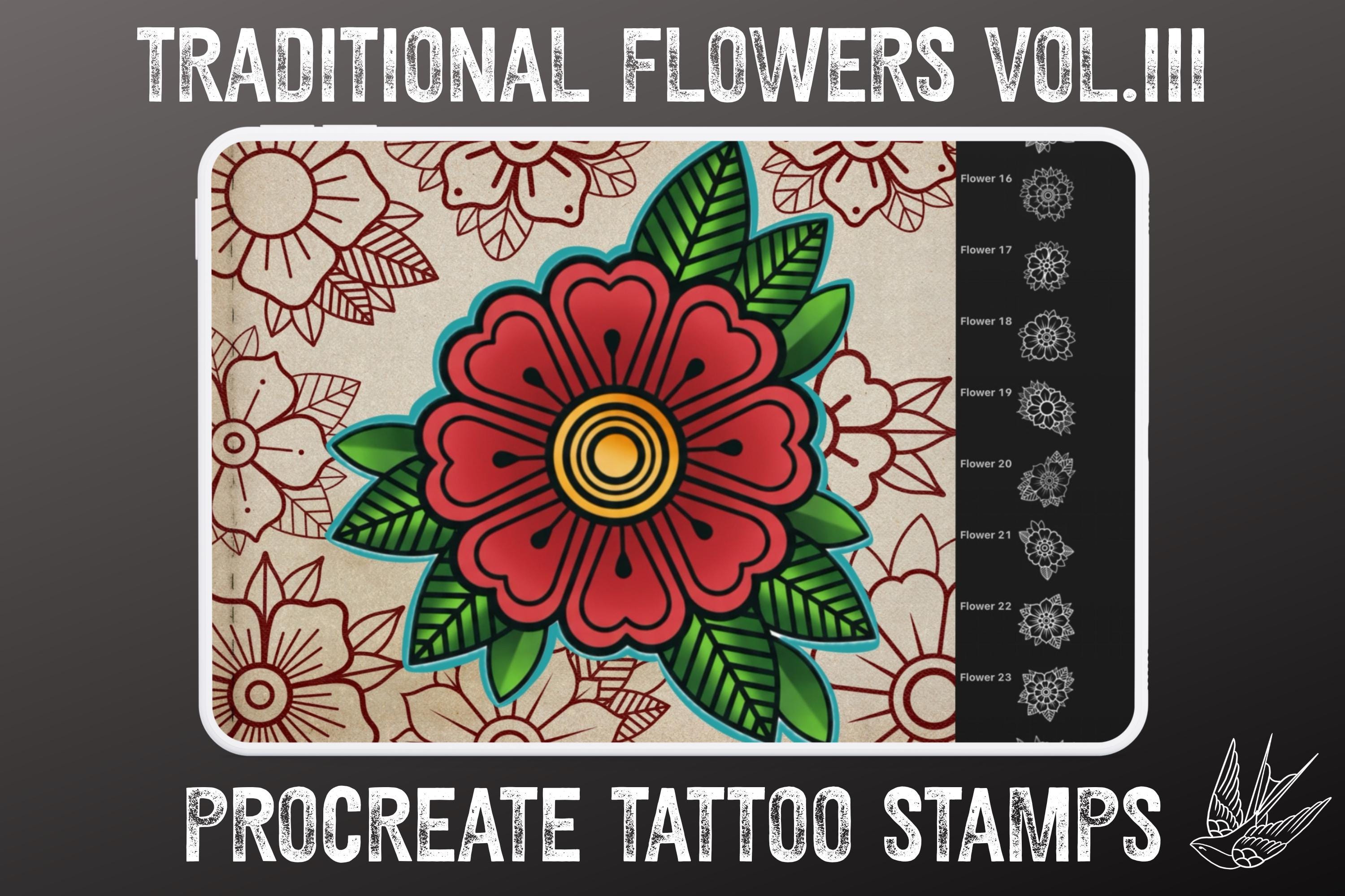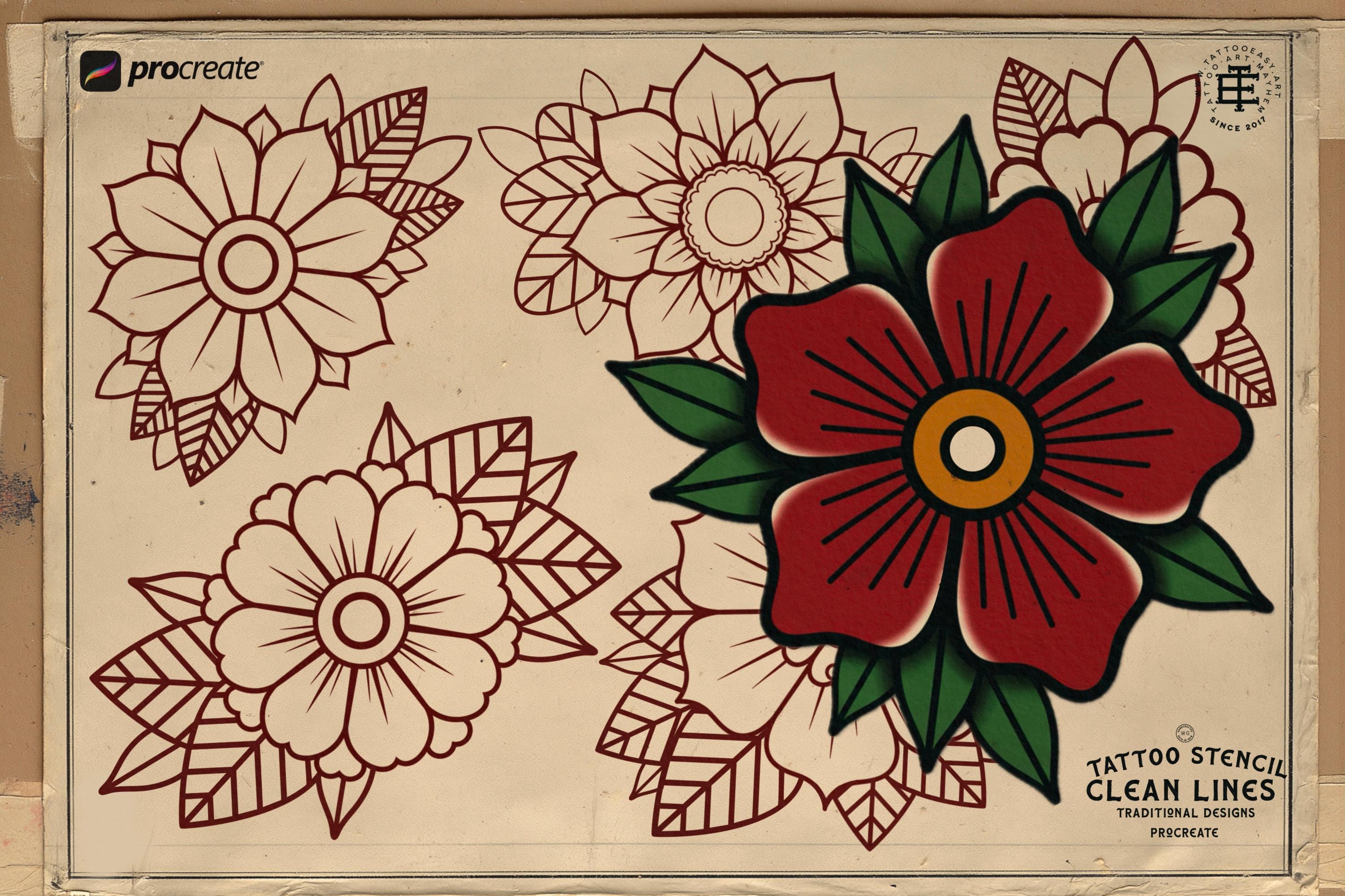 Traditional Tattoo Flowers 3 25 flowers – Procreate Stamps | Old School Clipart