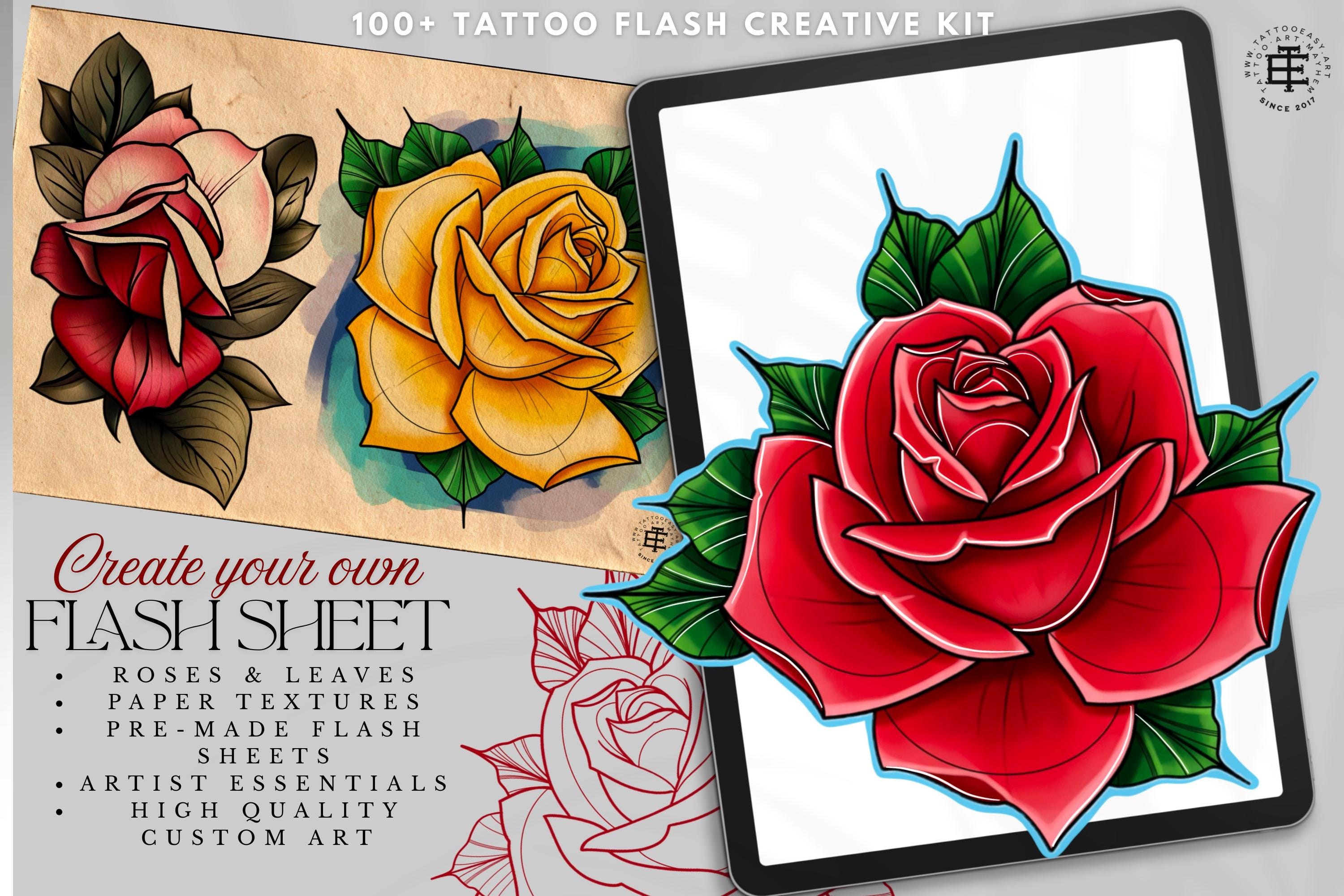 Essential artists botanical. Leaves, trad. flowers, Roses - Neo-traditional rises