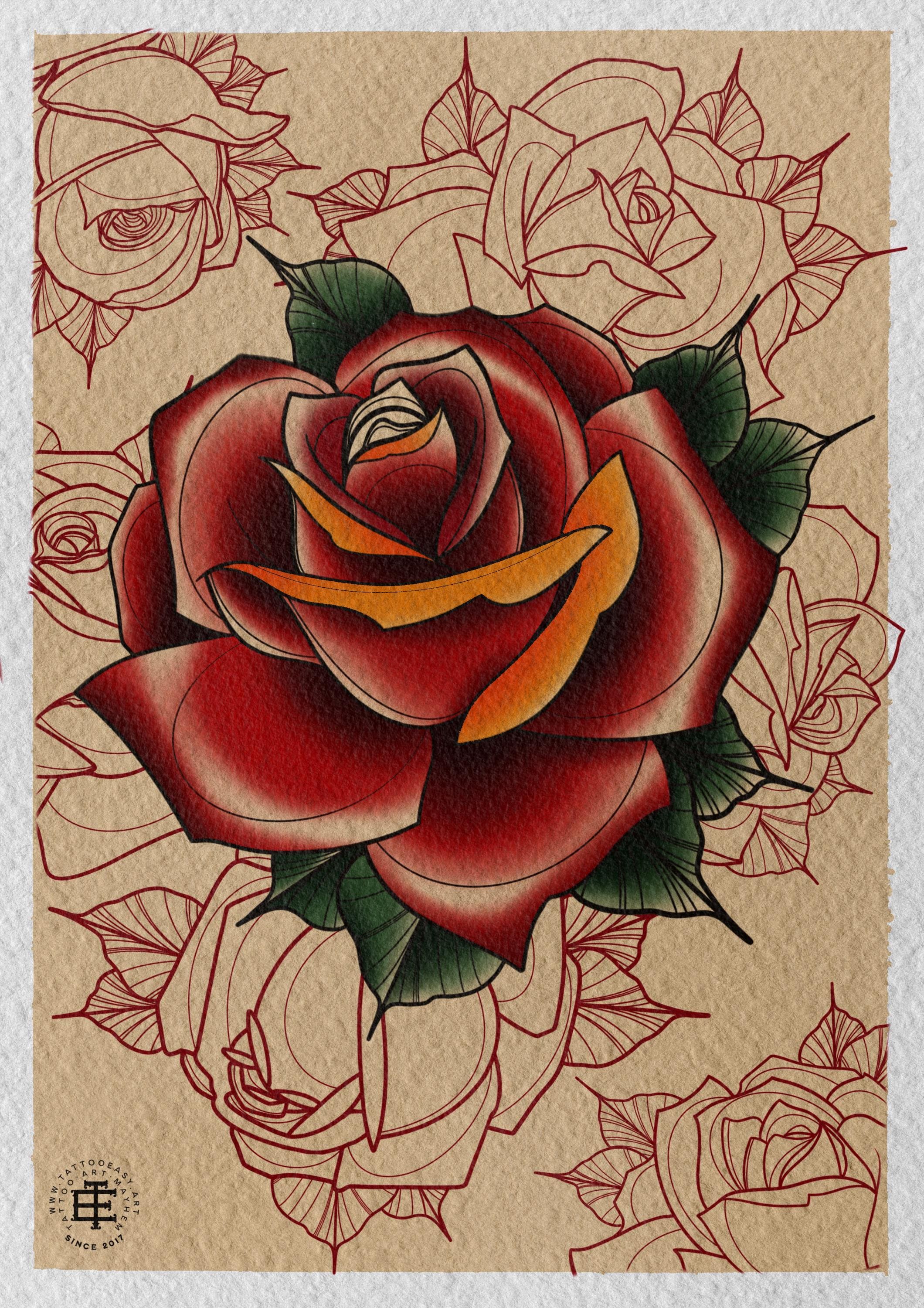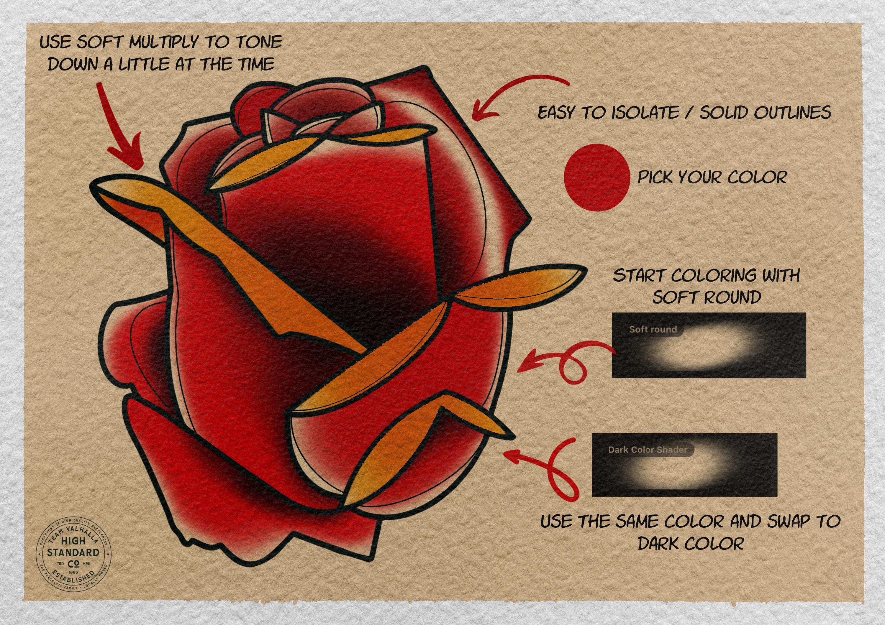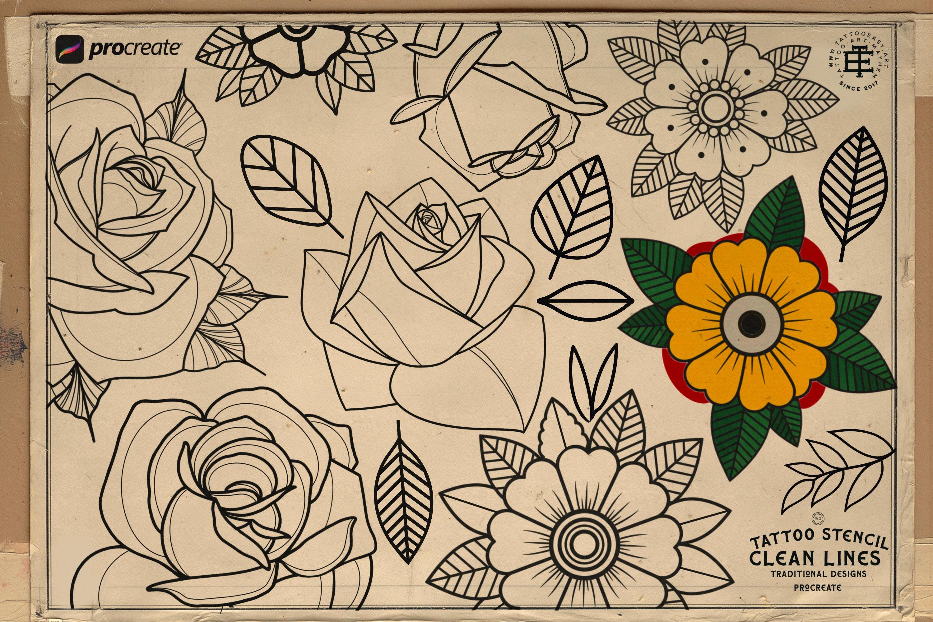 Essential artists botanical - Neo-traditional roses,flowers, trad roses & leaves - Brush PNG