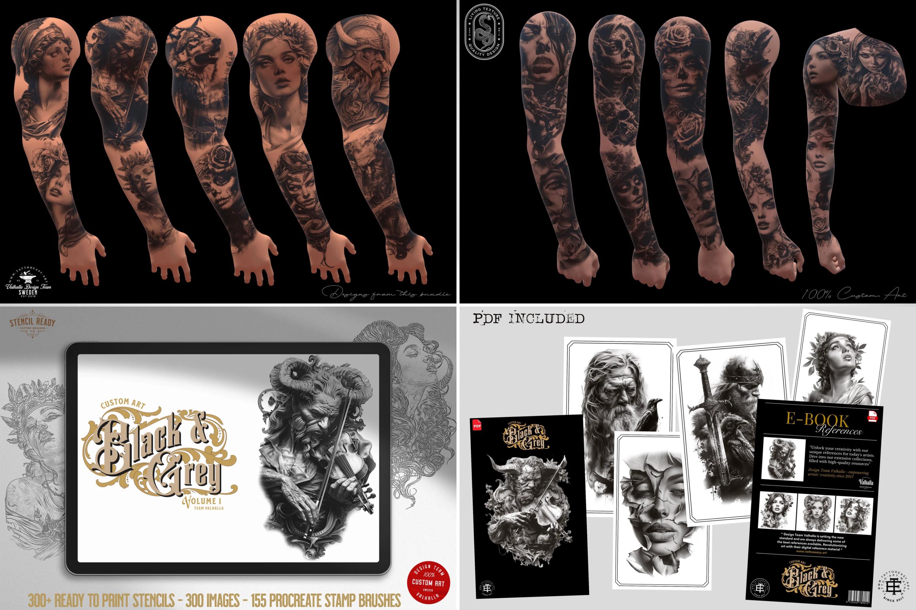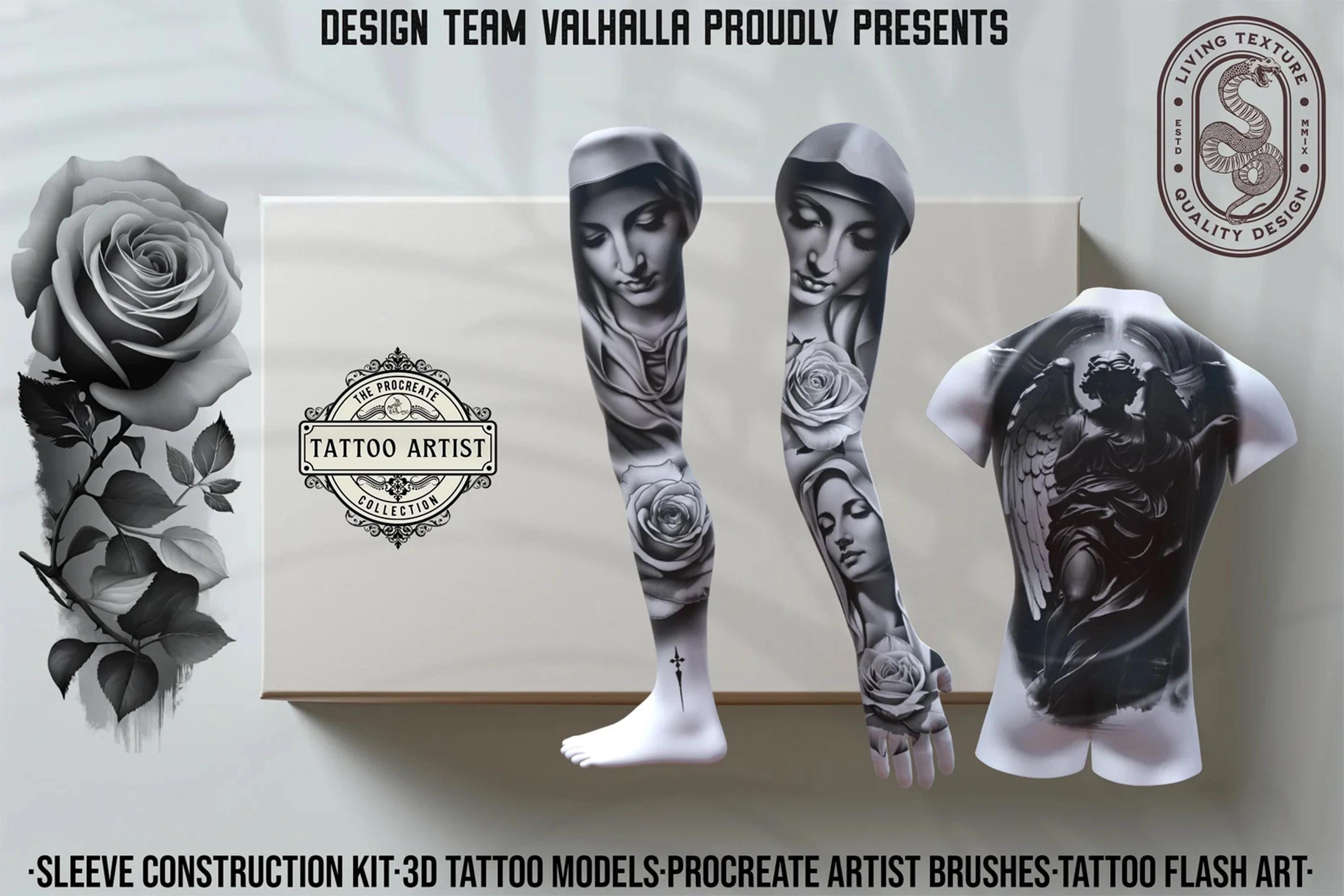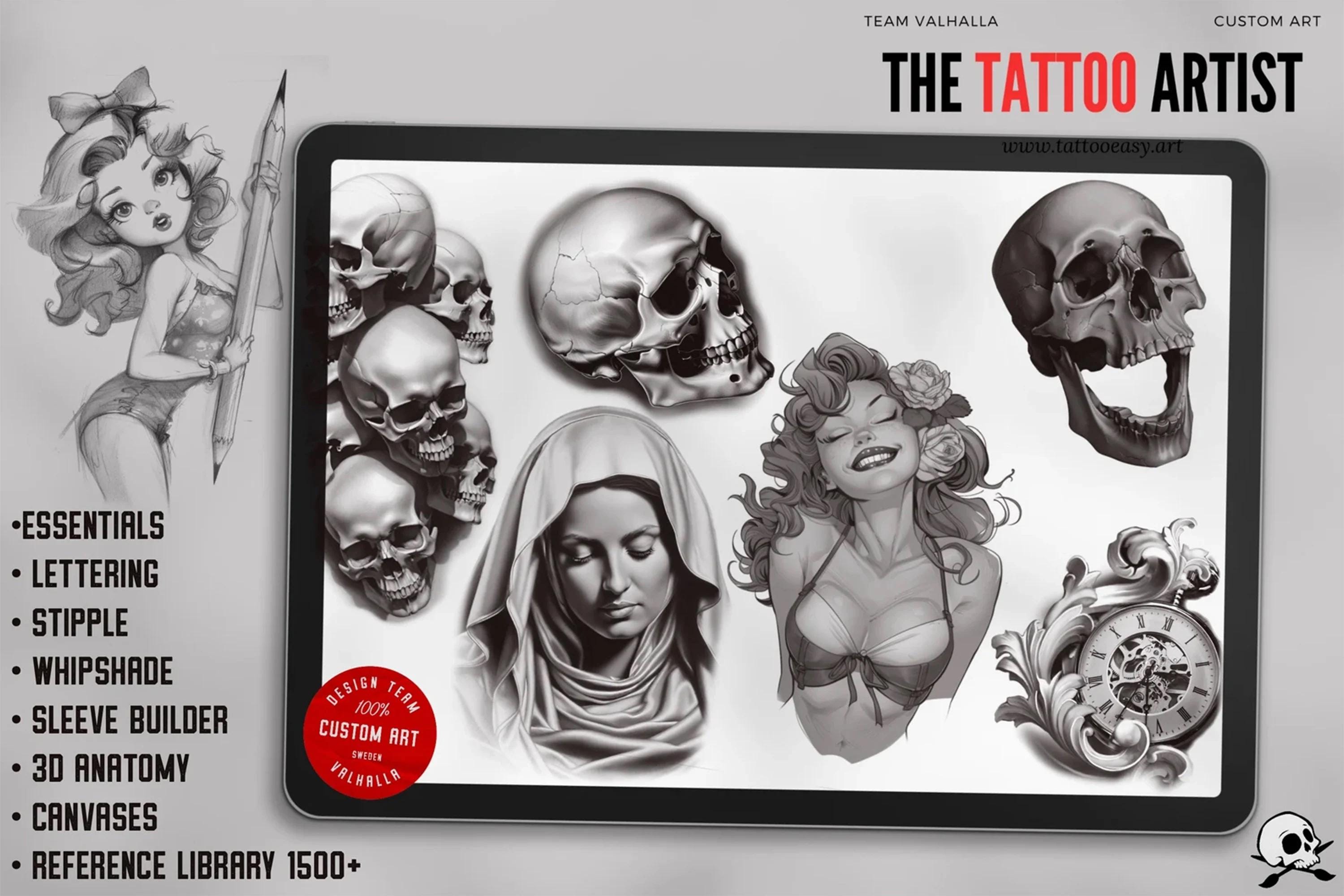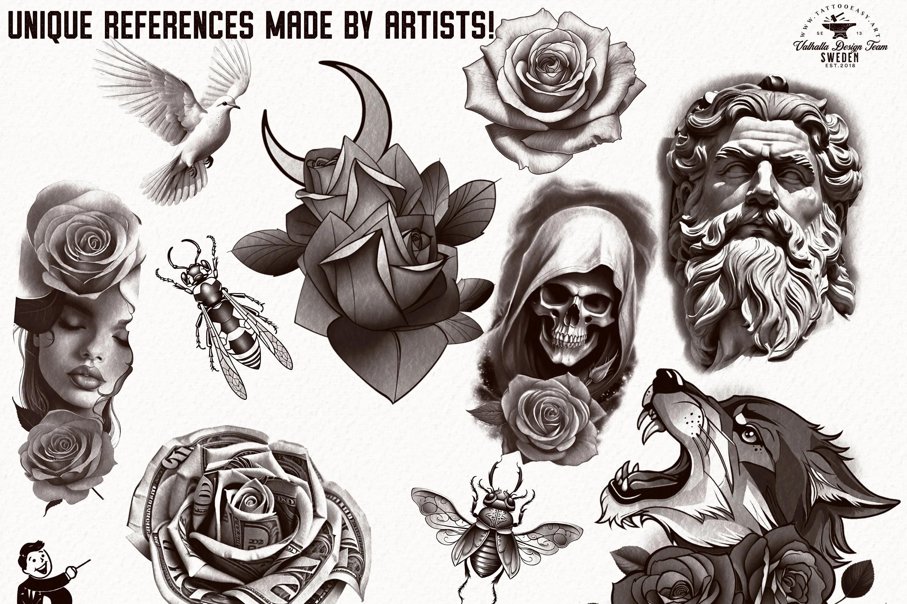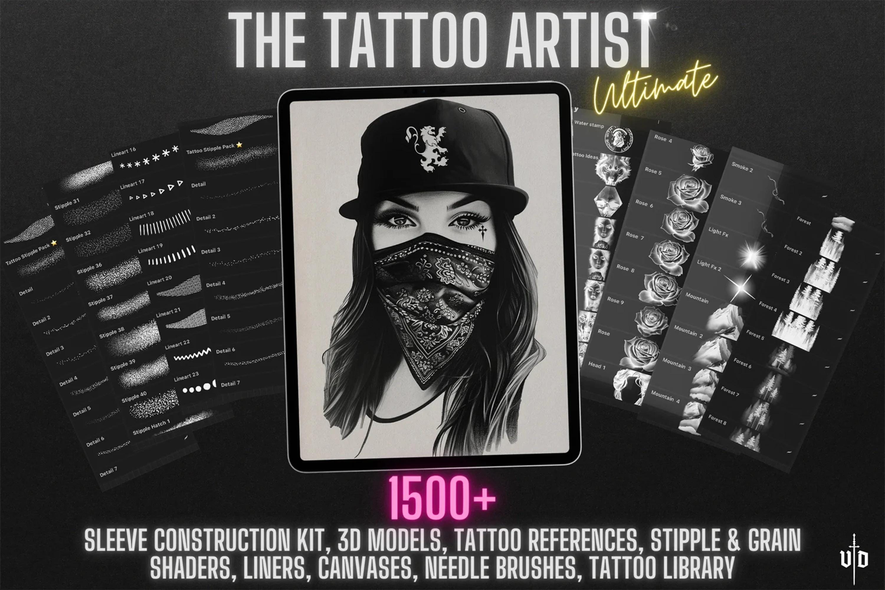 With high-quality references, easy-to-use templates, 300 dpi paper scans - ready made canvases, tattoo needle brushes, shaders, liners, 19 3d models, mixed in a variety of styles and themes, our collection provides endless inspiration and guidance for your creative process.