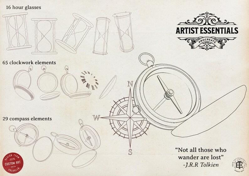 ✔️ Compasses, hourglasses, clockwork, keys, lamps,cups