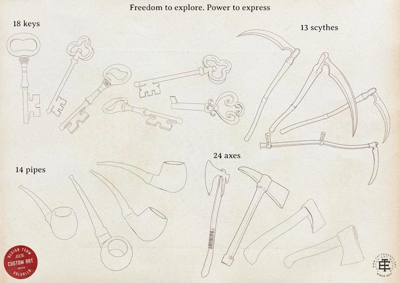This bundle is packed with original, custom reference stamps made to fuel your imagination and save you hours of work.