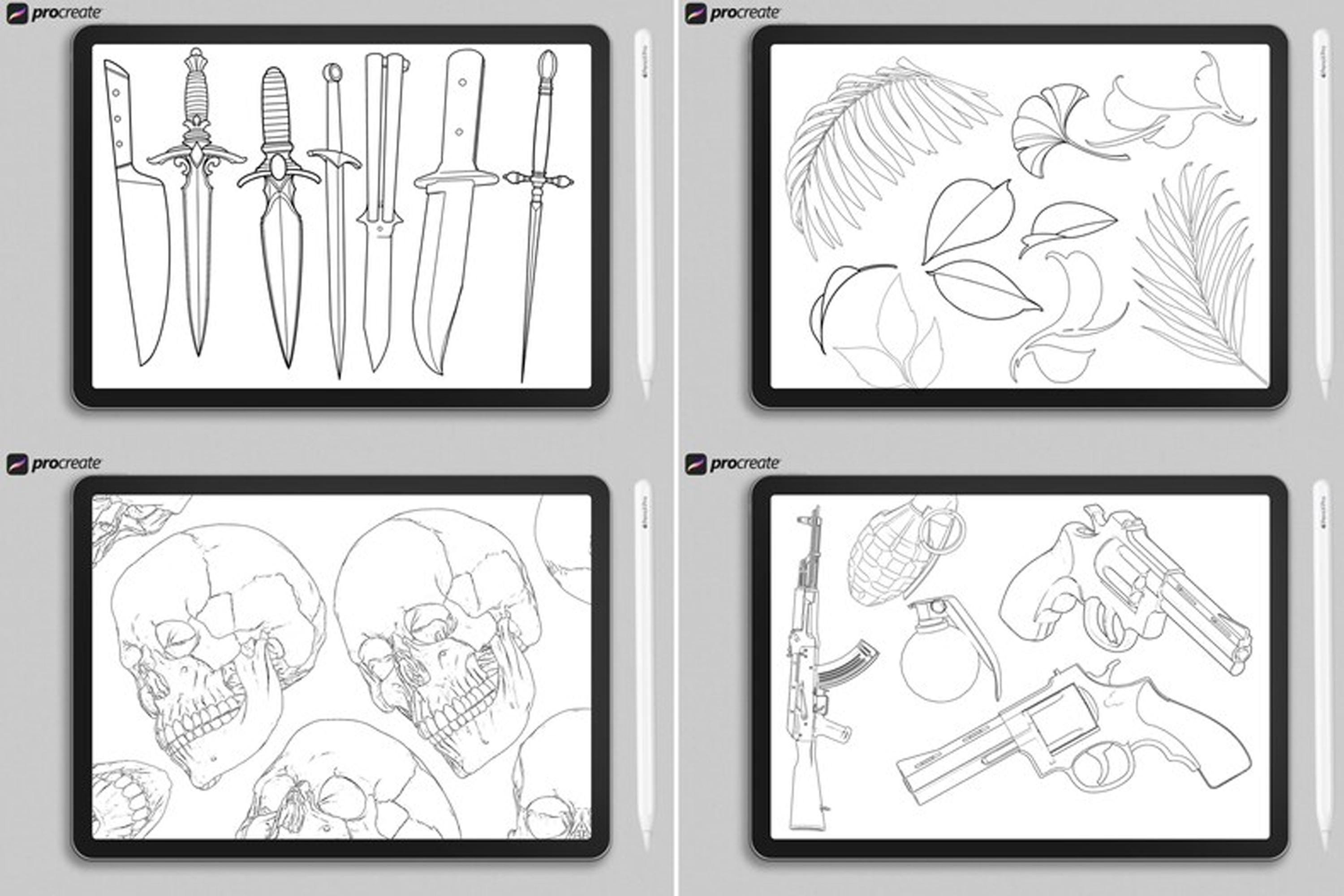 🎨 1100+ Procreate Stamps for Artists & Tattoo Designers