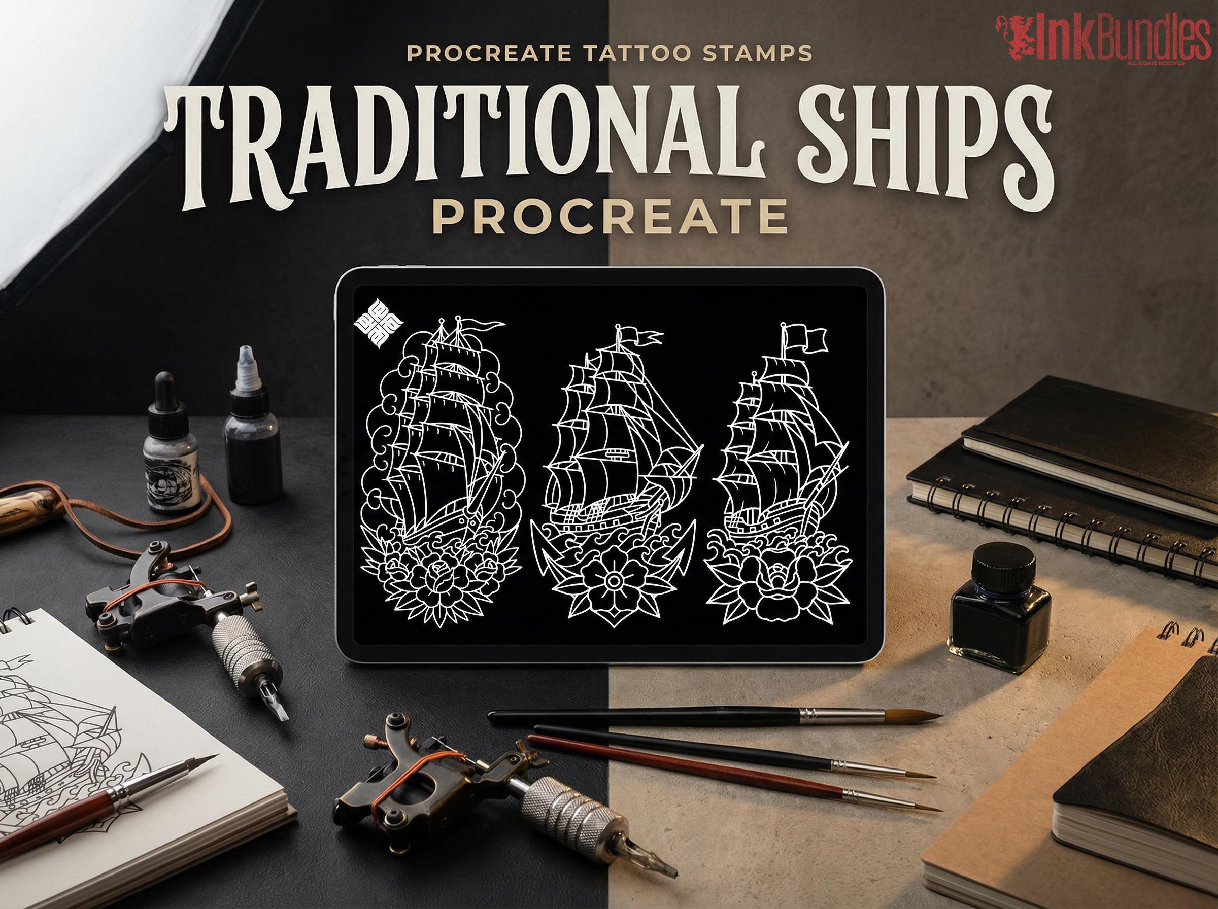 25 stencil ready Ships drawn by hand Procreate stamp brushes