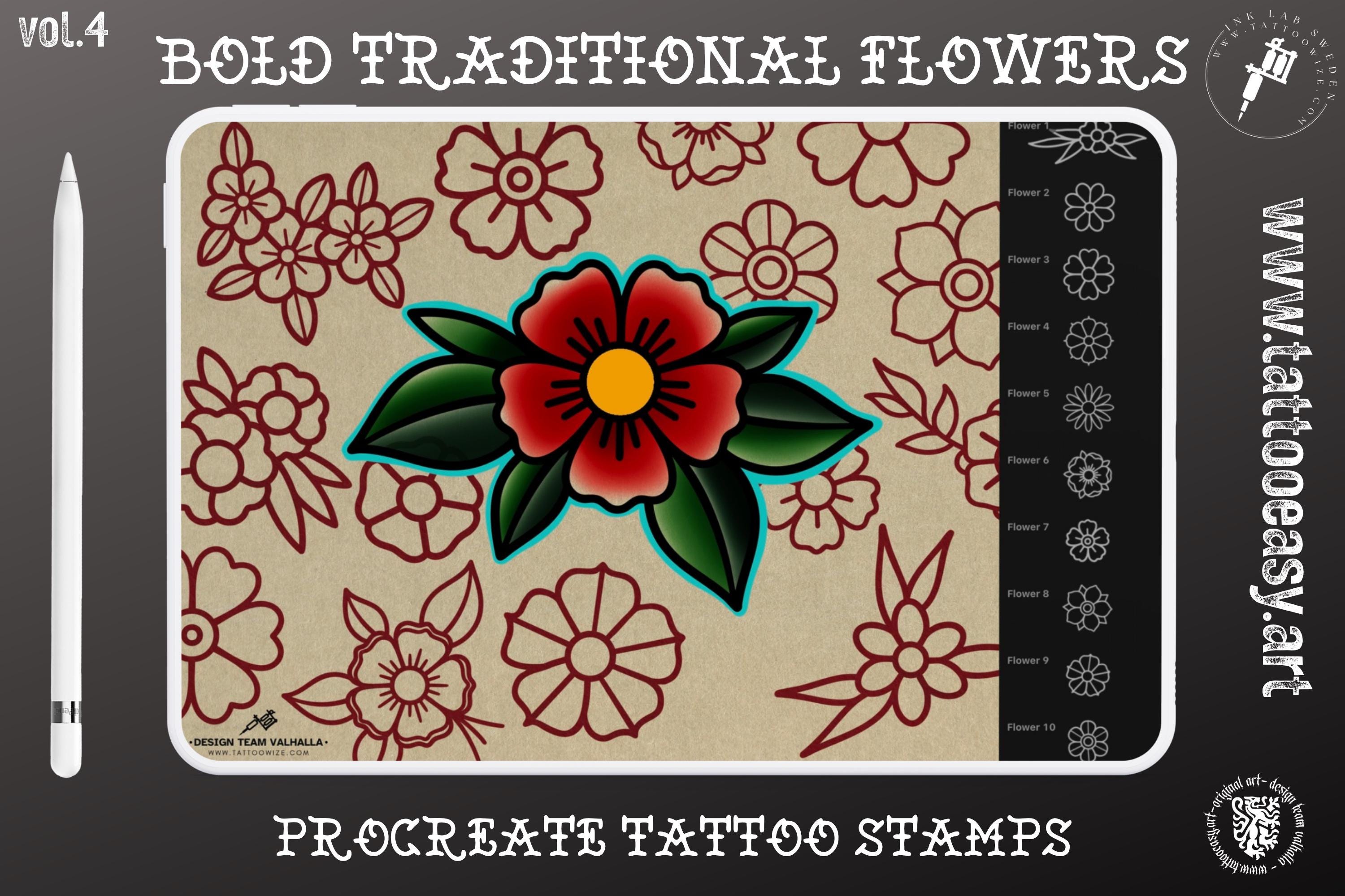 33 stencil ready flowers drawn by hand, Procreate stamp brushes
