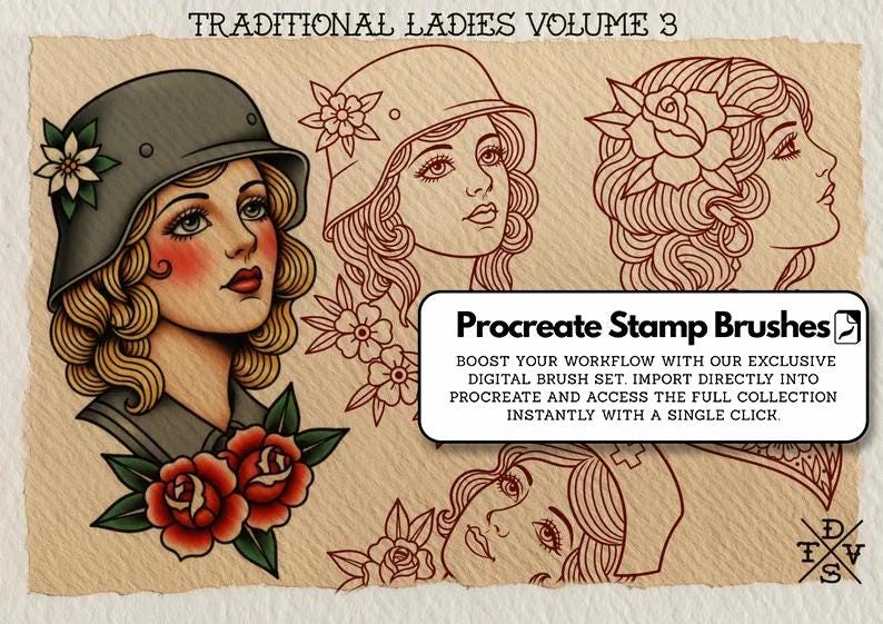 Traditional Ladies vol.2 https://tattooeasy.etsy.com/listing/4422047833