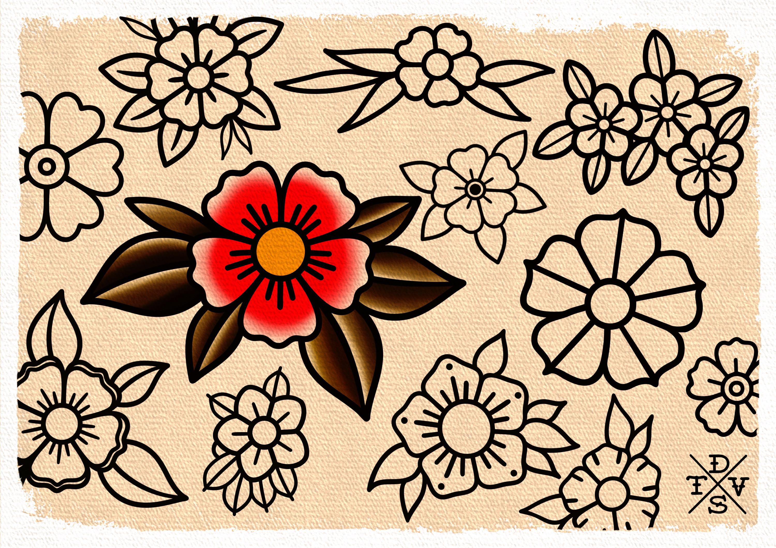 Traditional Flowers 4 "Bold" - Procreate, PNG, SVG, EPS
