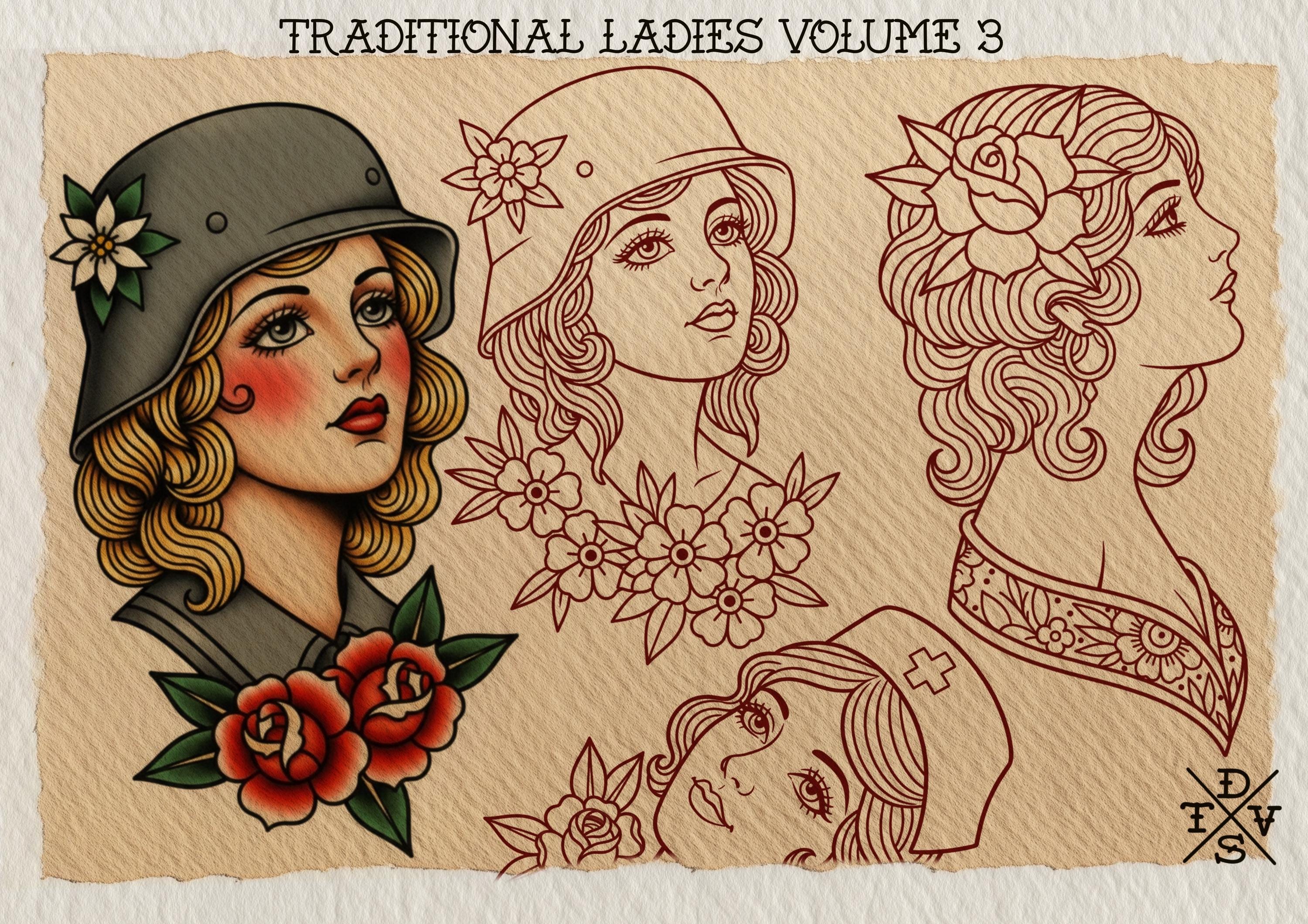 Traditional ladies vol.3 + pdf ebook , color & stencils 50 pages, ( procreate, pdf, .svg & .eps version)
