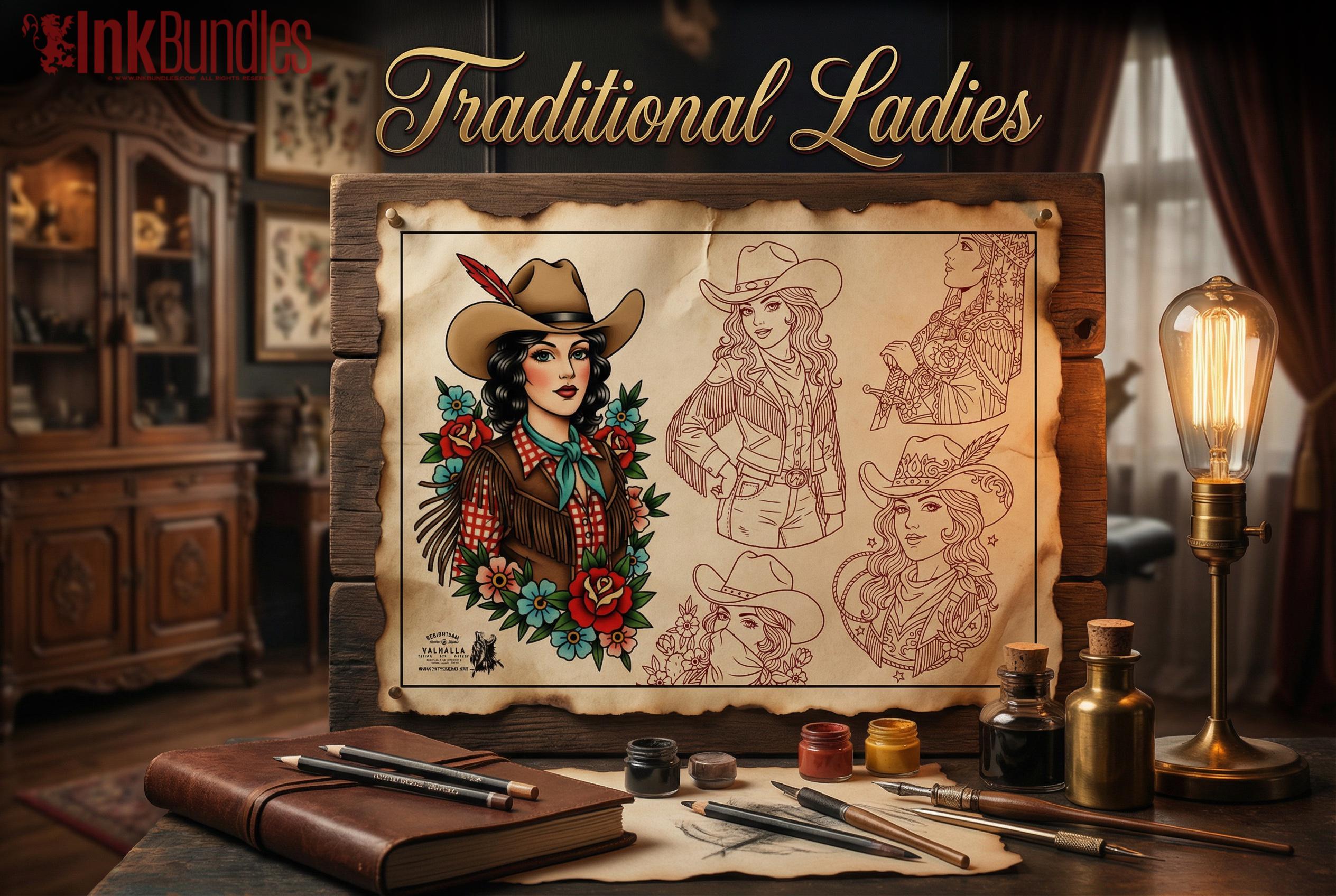 Procreate, Traditional Ladies vol.4 & vol.5 ~ 50+ custom designs made in Sweden - original art