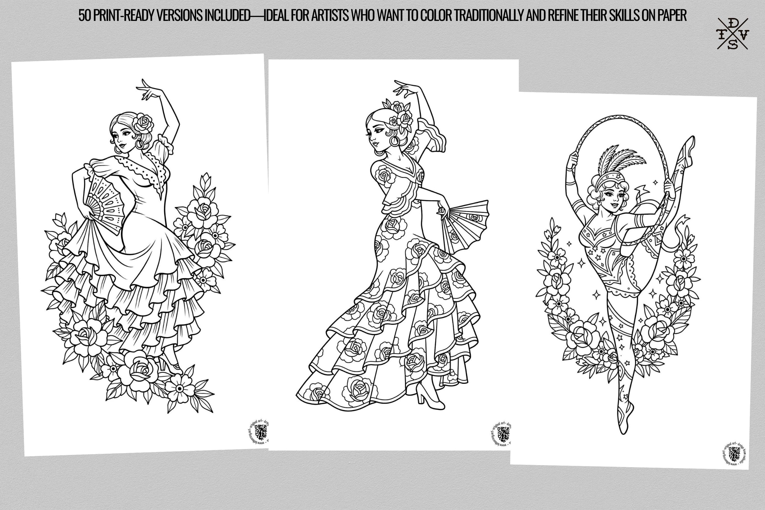 Pdf-ebook digital download 100 pages 50 outlined & 50 colored designs