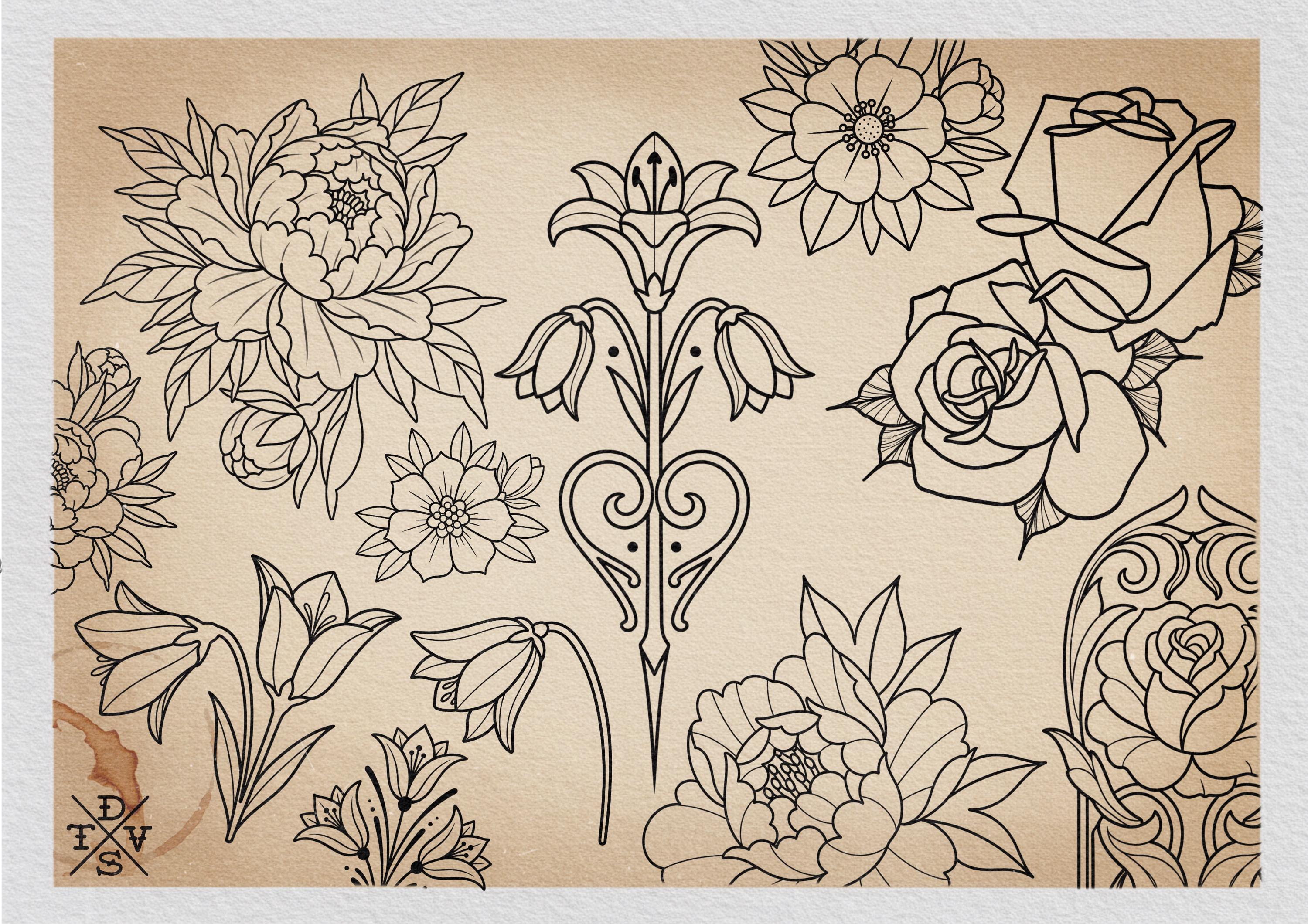Traditional tattoo flowers 1 https://tattooeasy.etsy.com/listing/4376146571