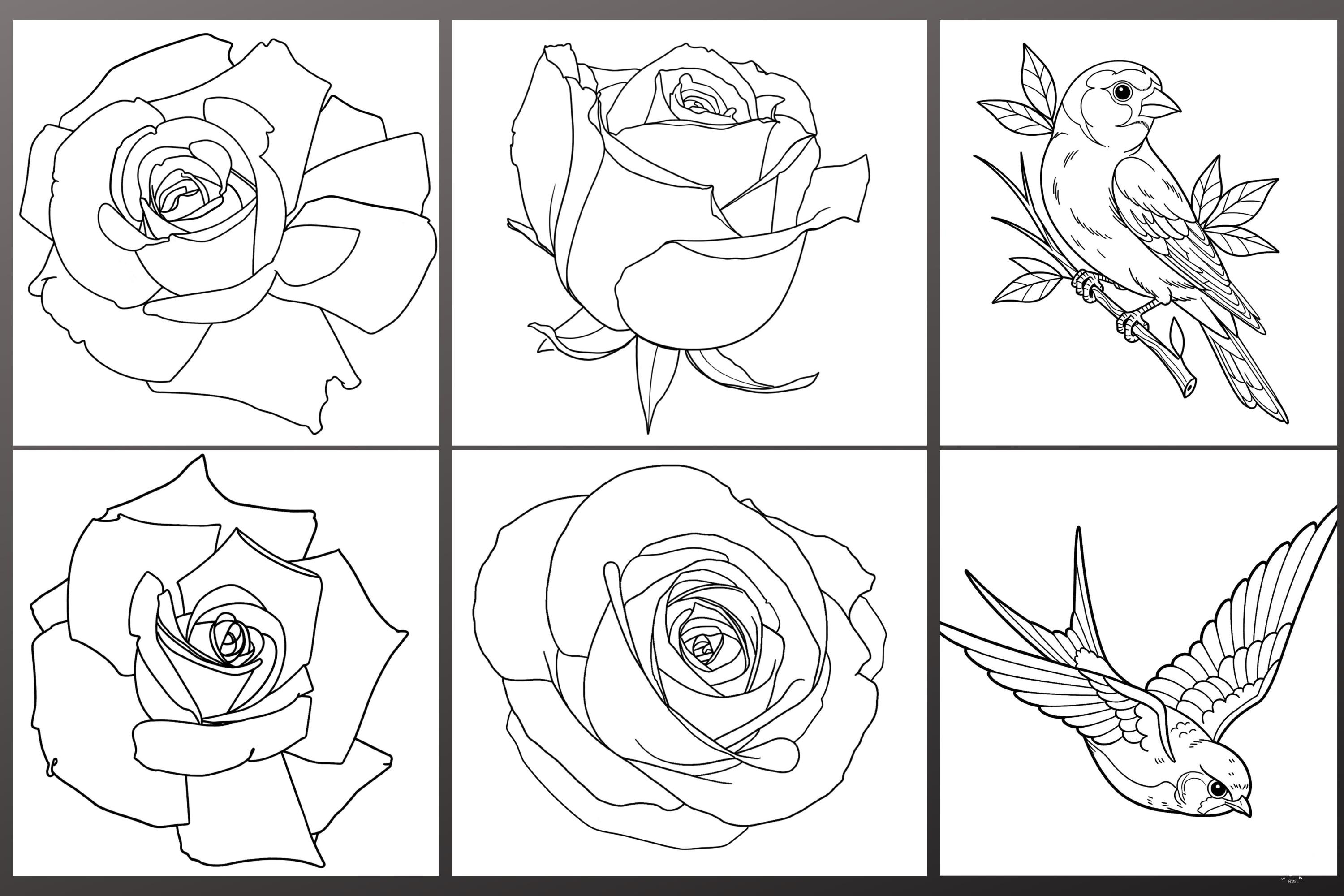 ~50 Roses, birds, design assets, leaves & misc. designs