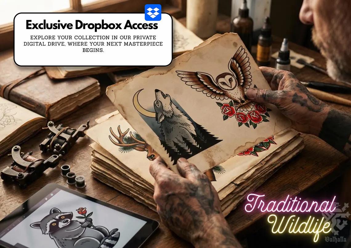 🔱 Digital Artists: Seamlessly blend premium traditional and modern tattoo motifs into your existing digital illustrations.