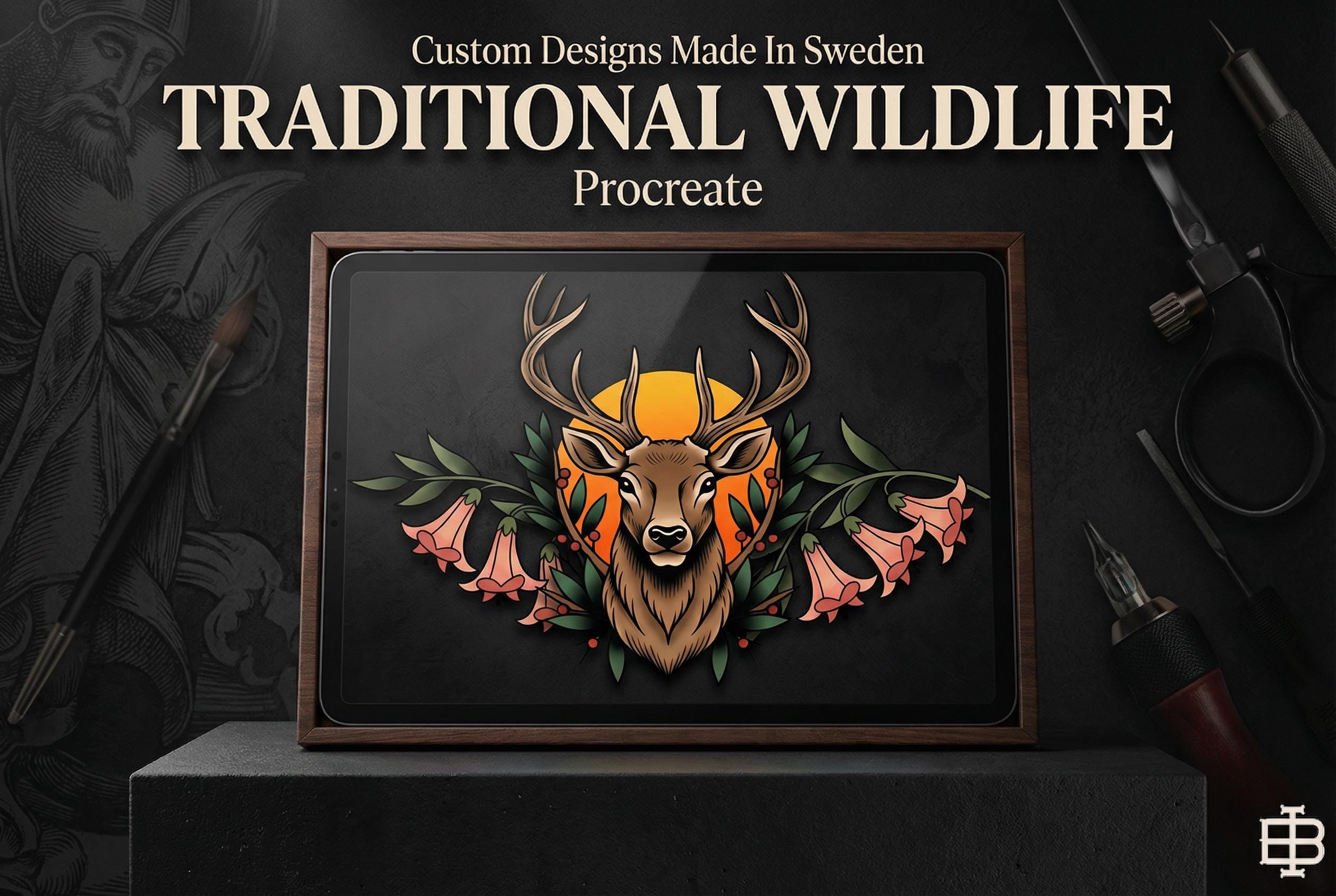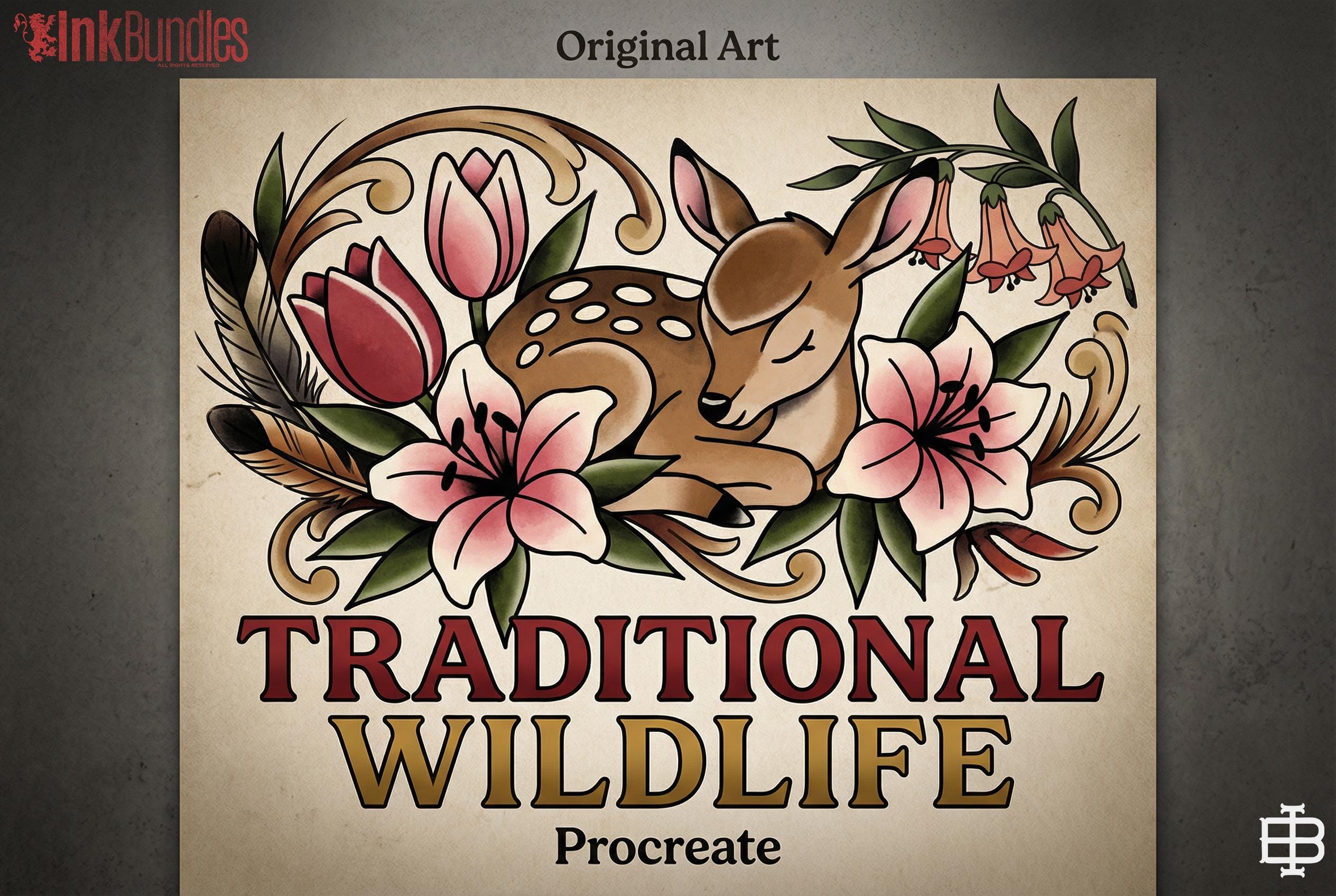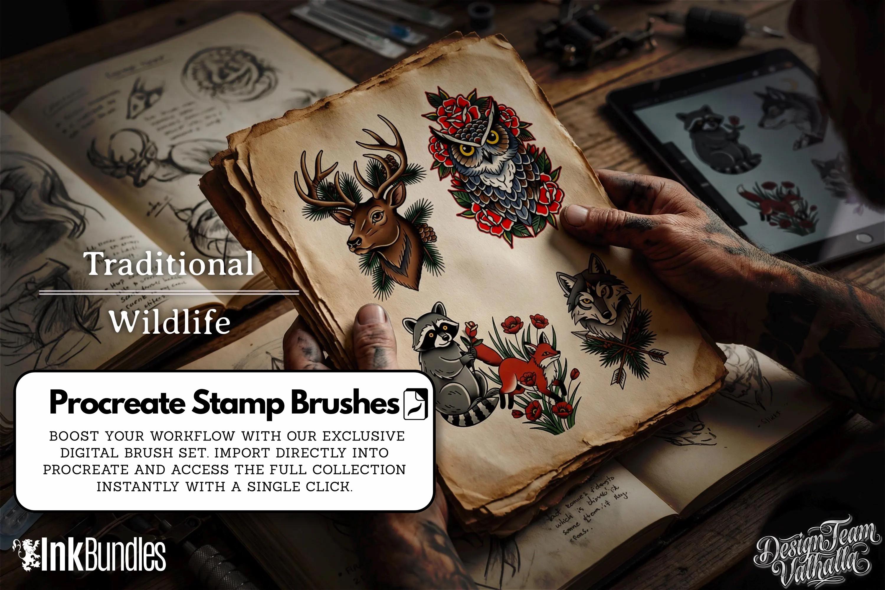 Traditional wildlife Procreate stamps ( digital download ) old school tattoo flash art