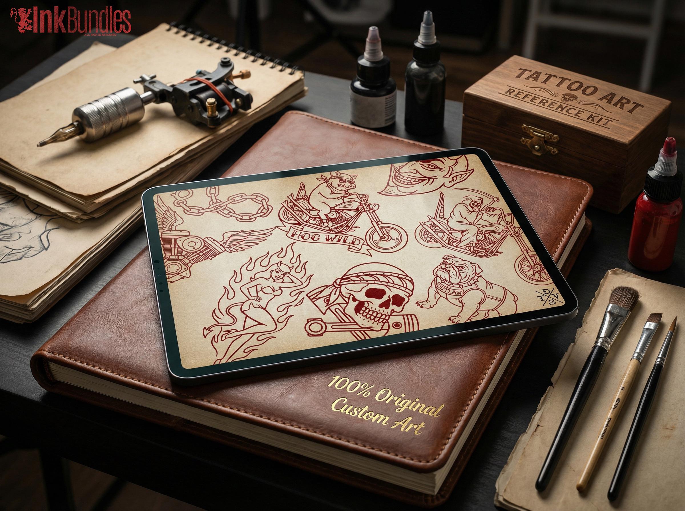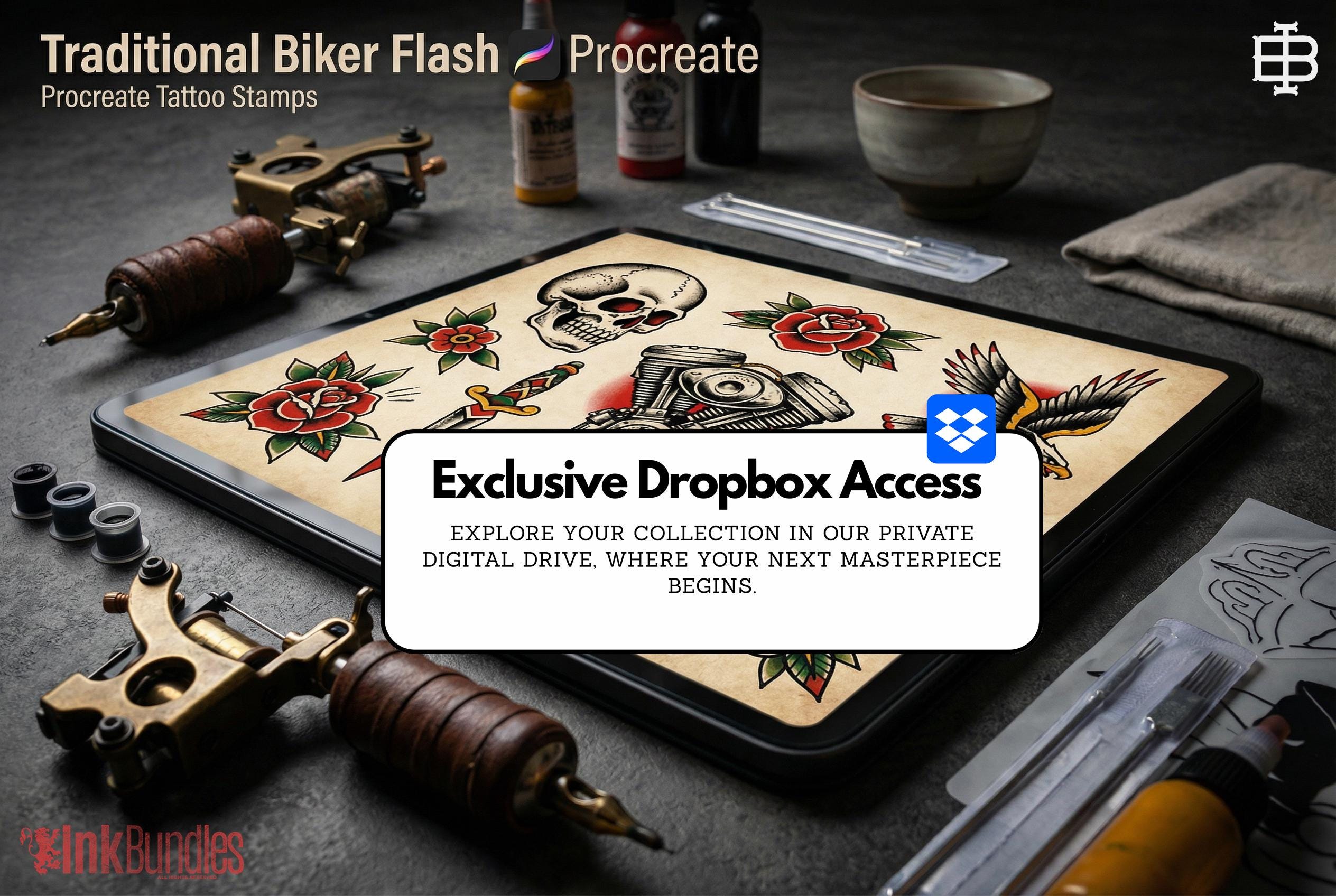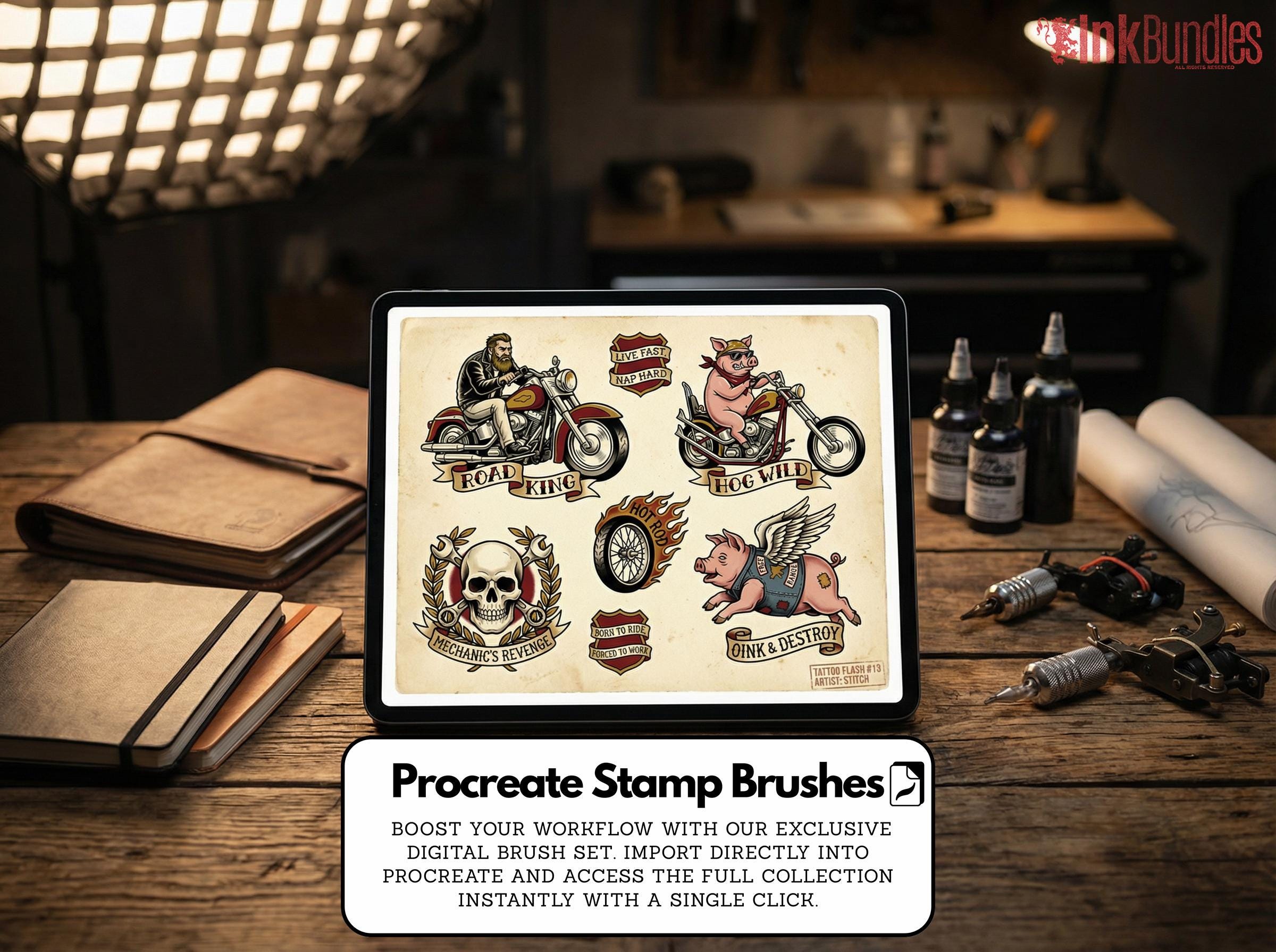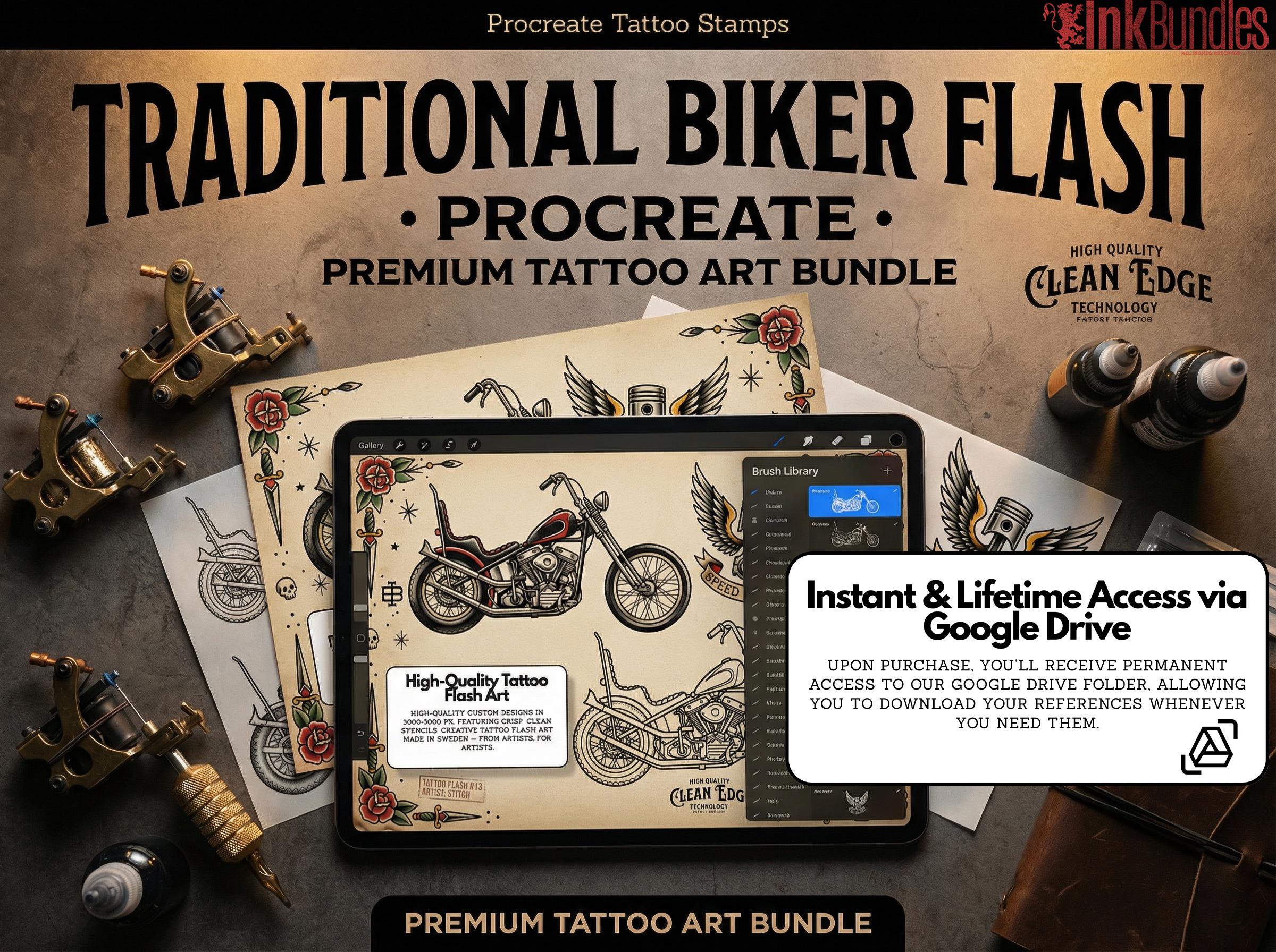 Traditional Biker Tattoo Design kit - Procreate & PNG | 100+ old-school Tattoo stencils