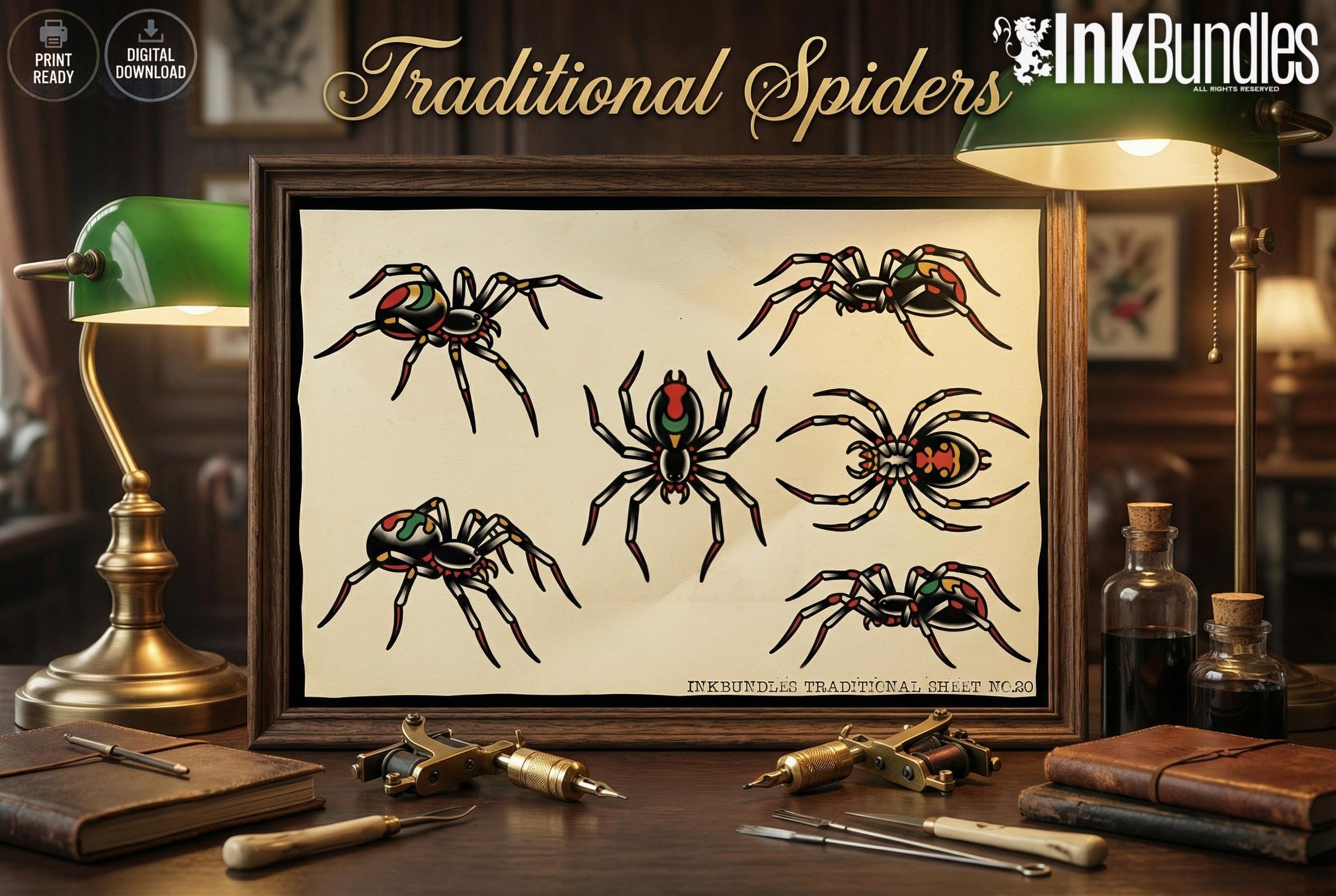 Traditional Spiders - custom art | digital download | Tattoo Stencils | Flash designs