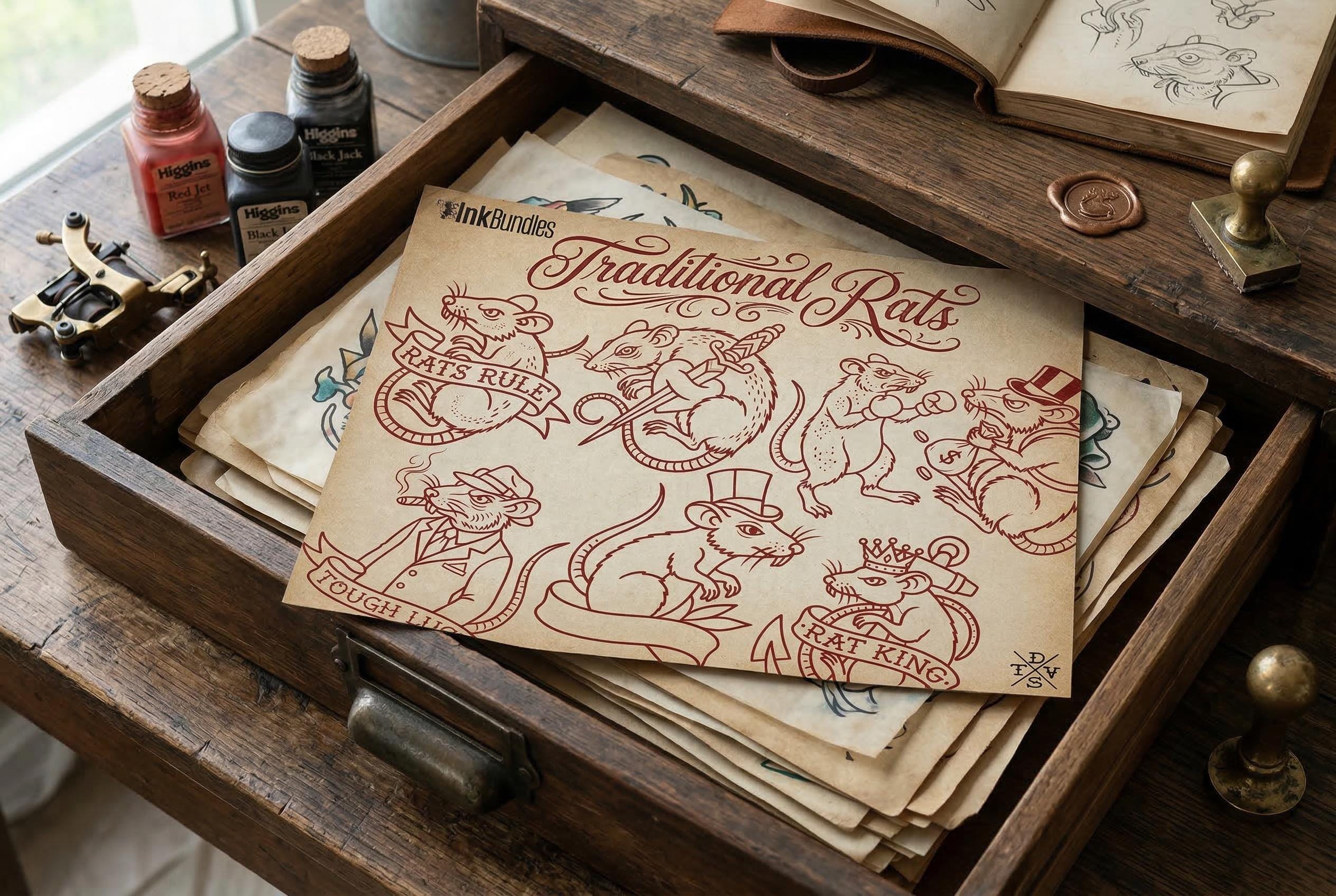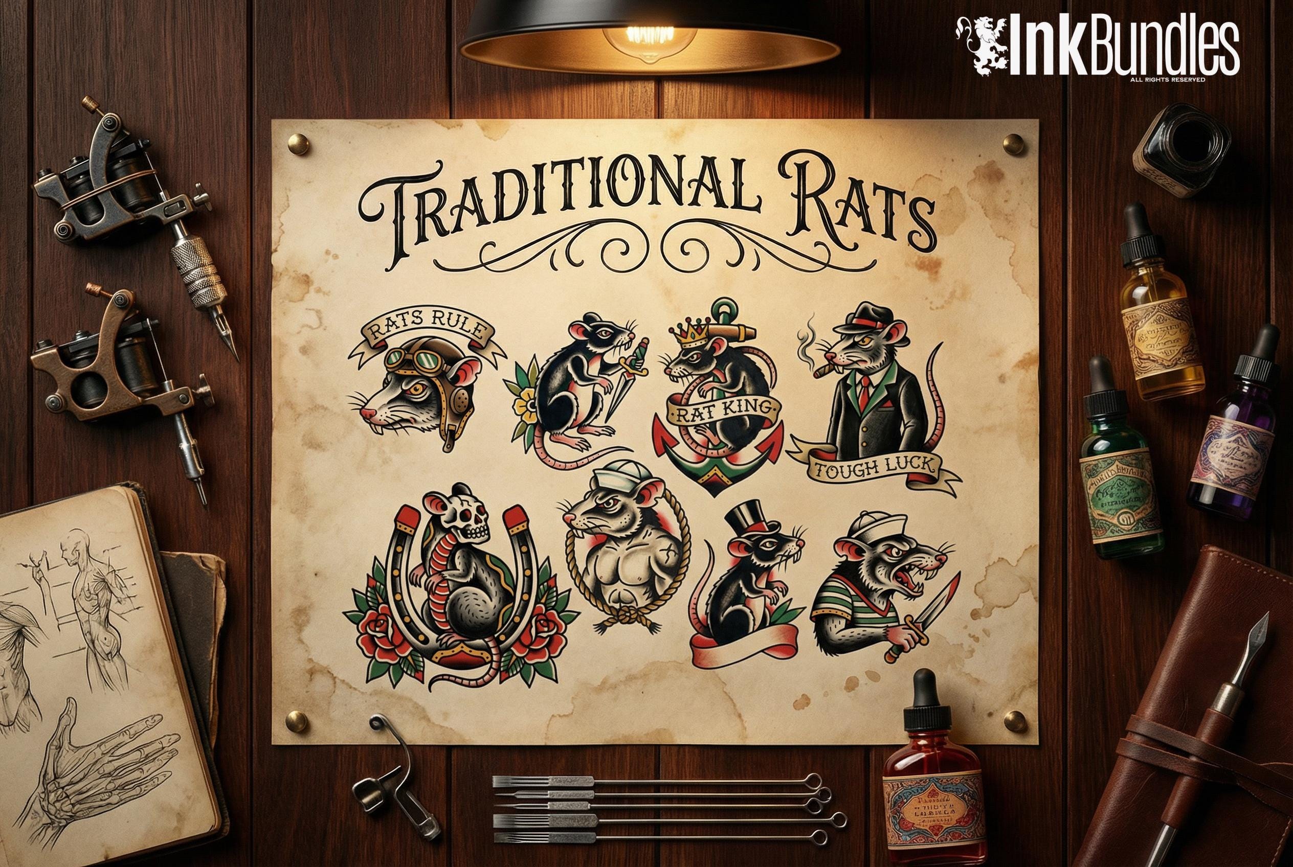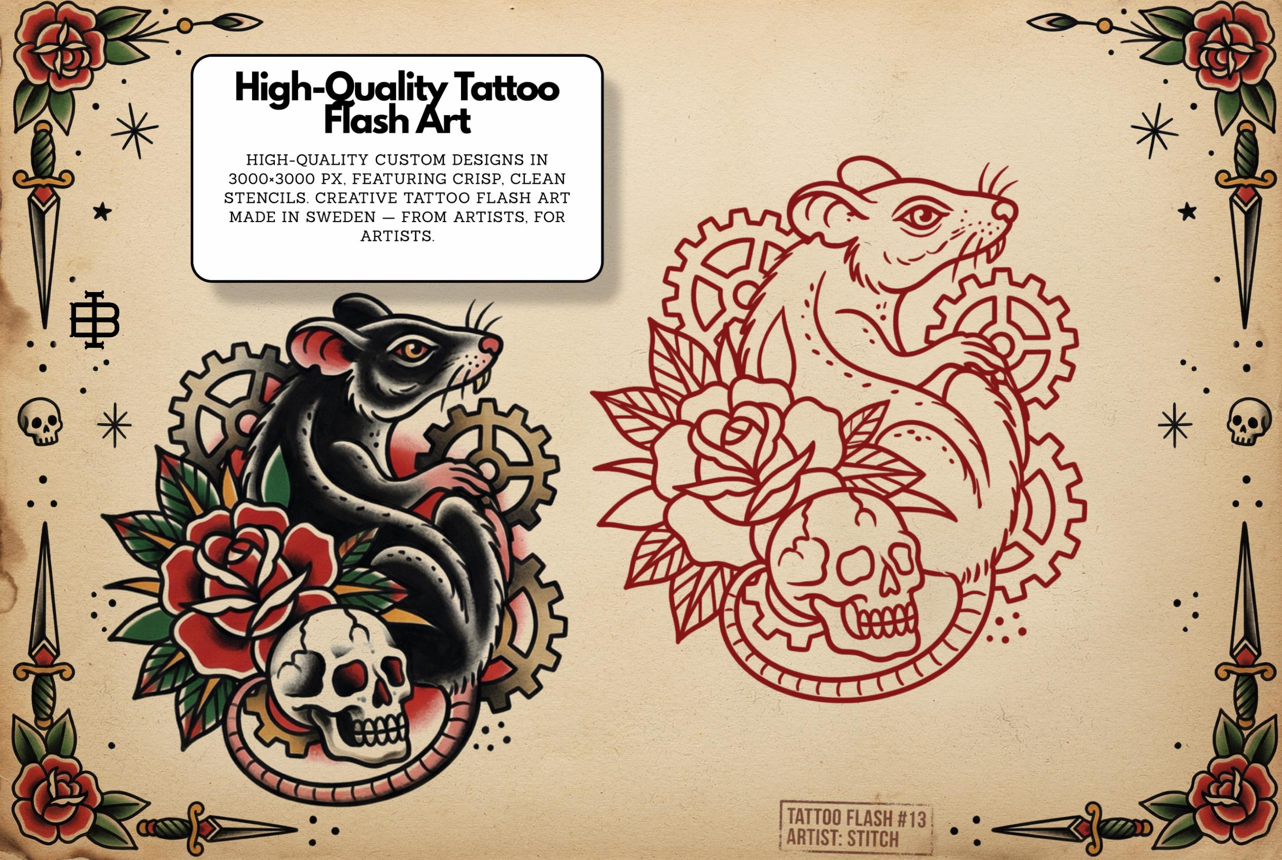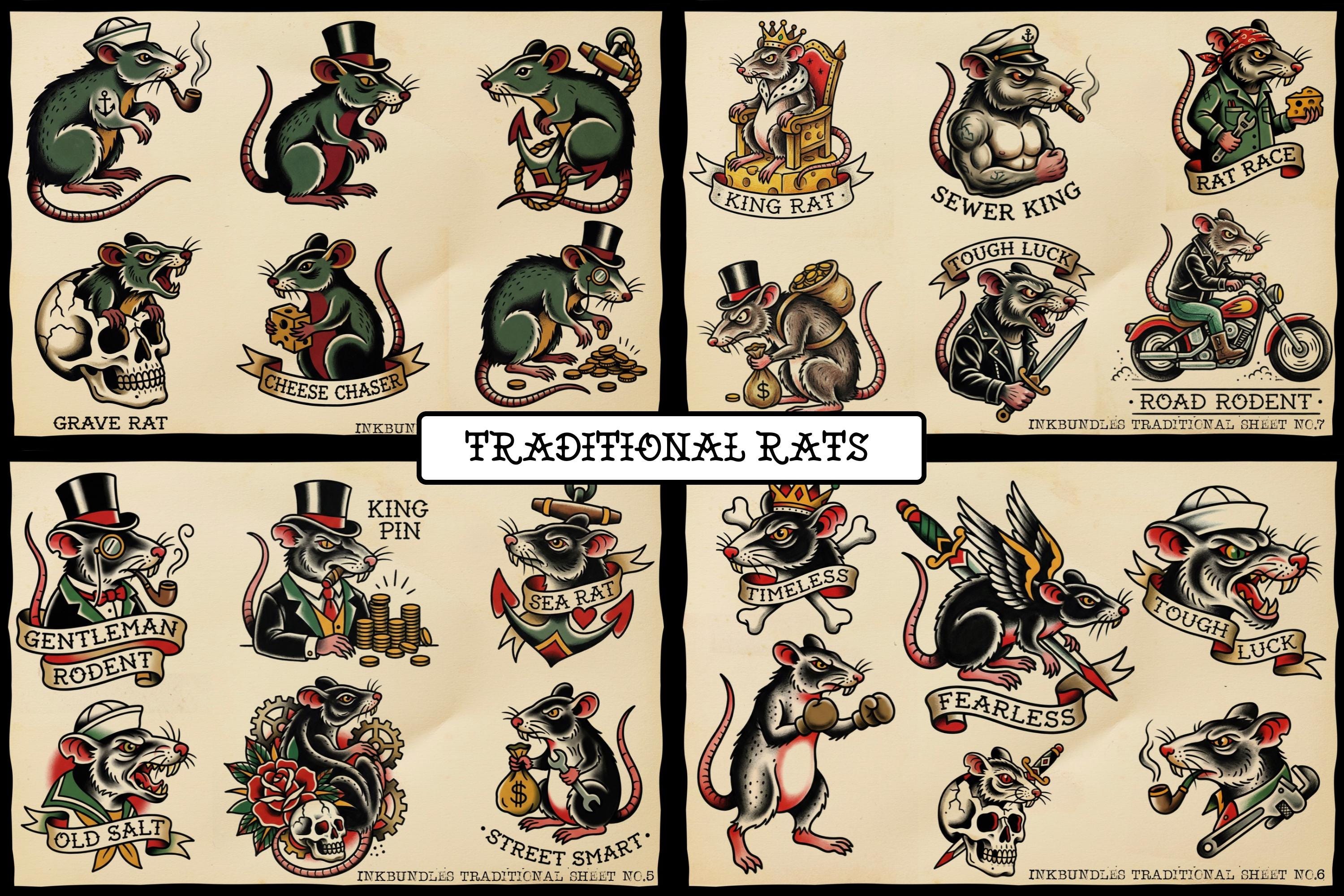 Traditional Rats - custom art | digital download | Tattoo Stencils | Flash designs