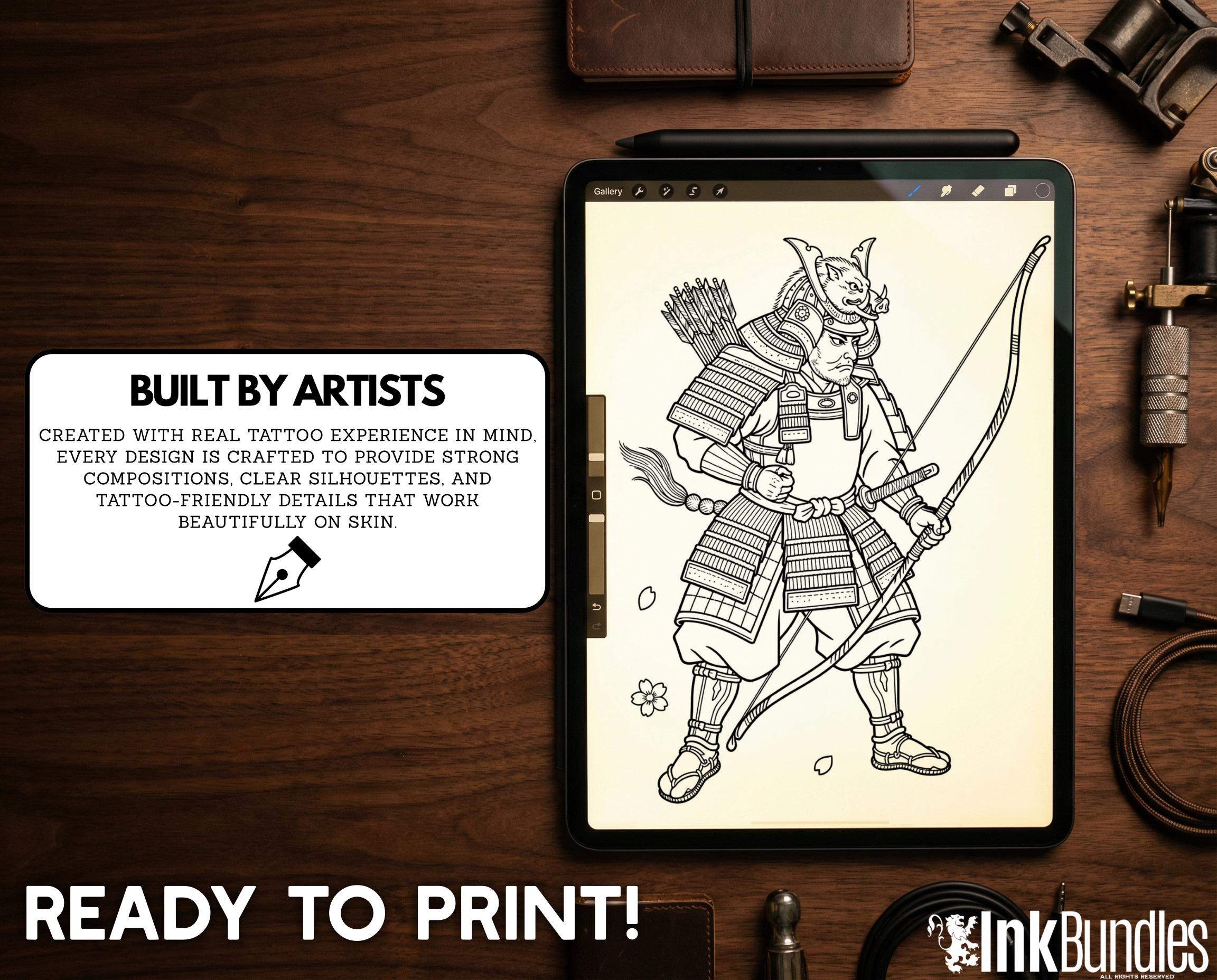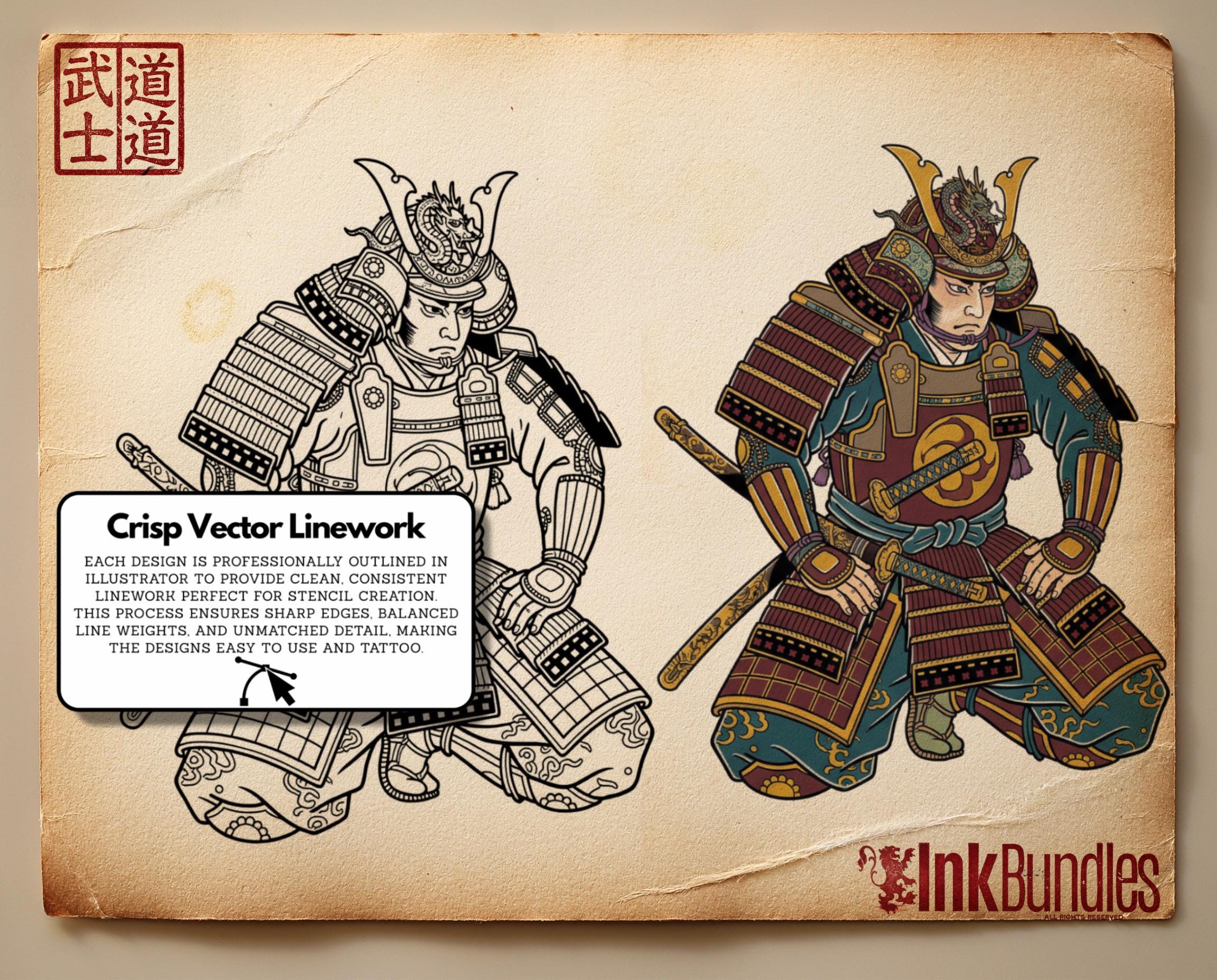 “Bushido” Japanese Samurai Warriors Bundle is a digital stencil and reference kit designed to help you create powerful, readable samurai-themed tattoo artwork with a clean workflow.