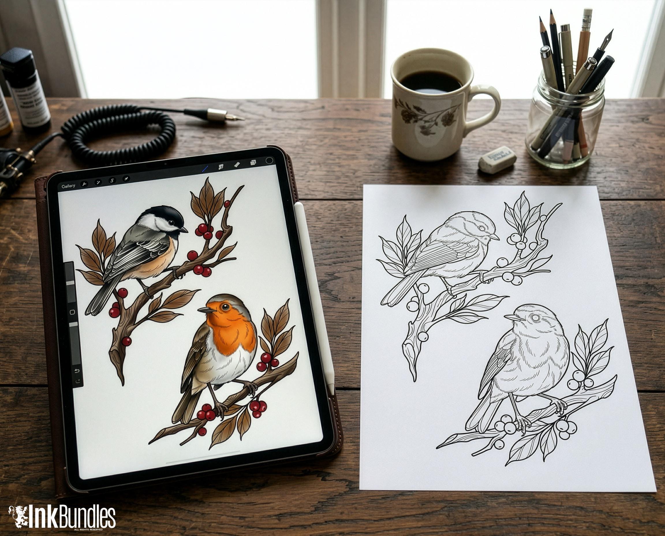 This Reference Kit is a digital stencil library designed to help tattoo artists and designers easily add semi-realistic bird designs into their compositions quickly while keeping a clean, professional workflow.