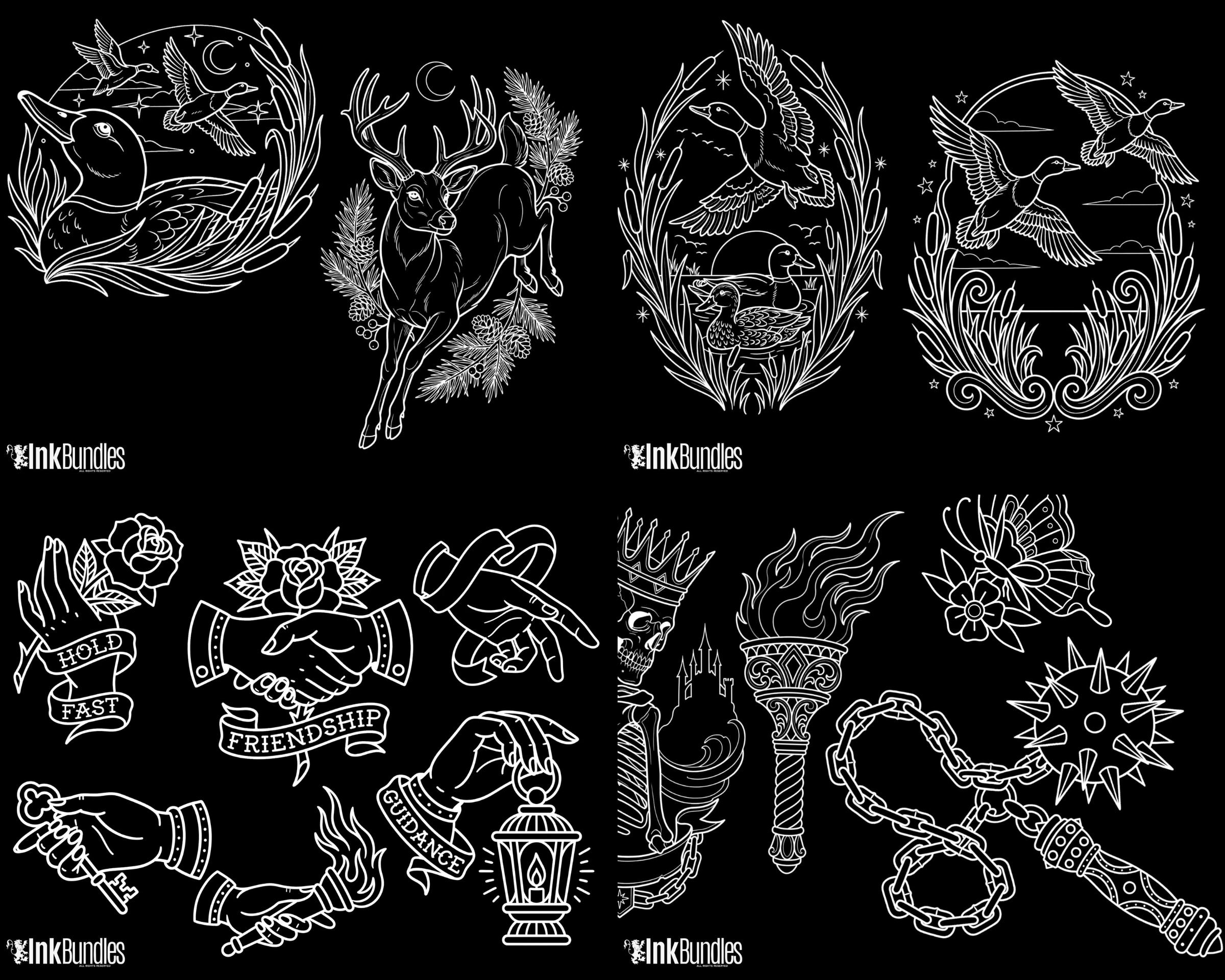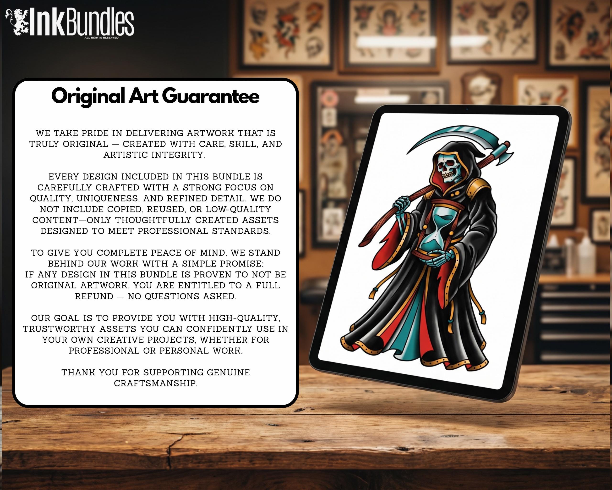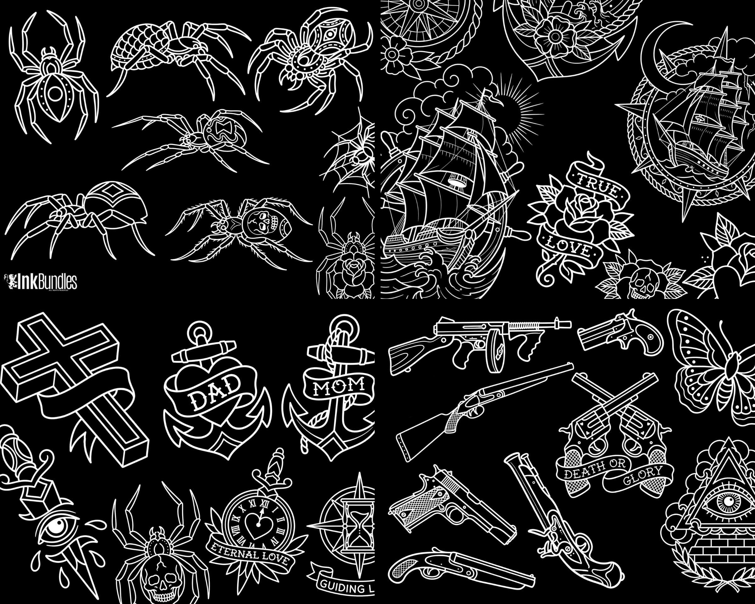 Build classic traditional tattoo art faster with this Procreate Tattoo Kit featuring 1000+ 100% original flash designs and gap fillers. Includes a Procreate brushset (stamp brushes) plus high-resolution PNG files—perfect for tattoo artists, apprentices, and designers creating roses, skulls, pinups, spiders, and bold traditional bangers.