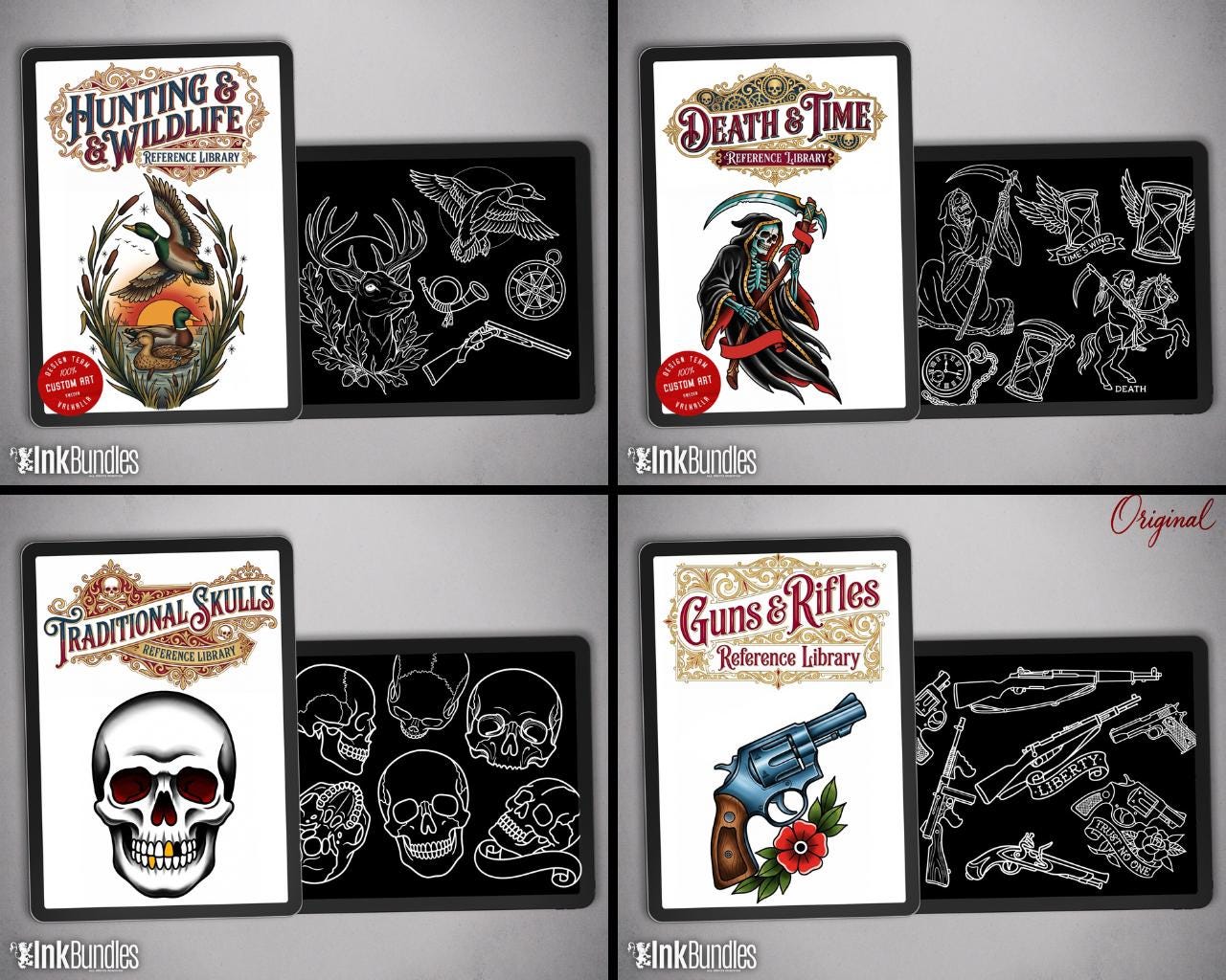 This Traditional Tattoo Procreate Kit is a massive digital reference and stamp bundle built for tattoo artists who want strong, classic flash foundations with a fast workflow. You’ll get 1000+ unique designs covering traditional staples like roses, skulls, pinups, spiders, death-themed motifs, bangers, and gap fillers—ready to stamp into Procreate or drag into any software as PNGs.
