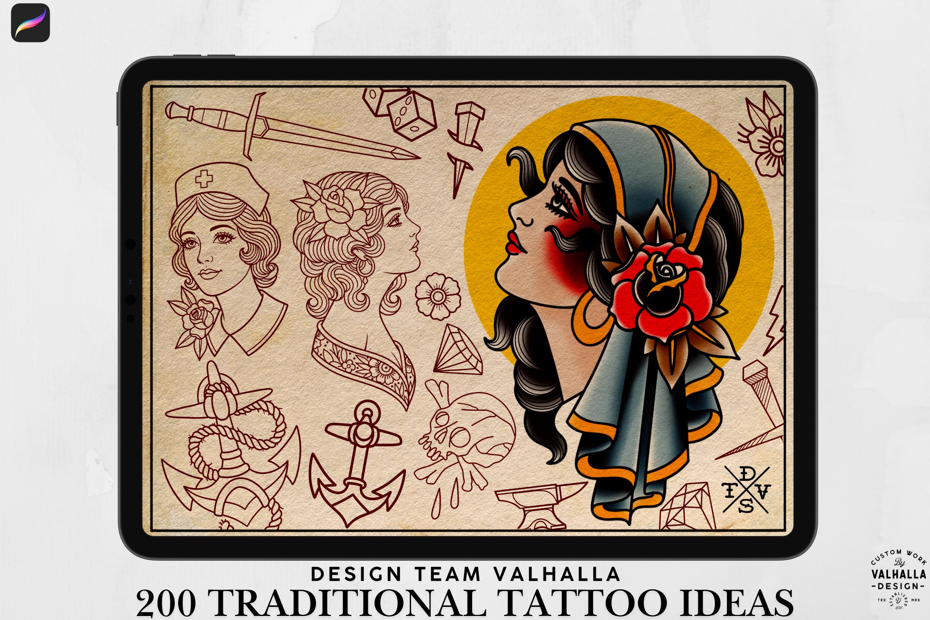 Step into a collection of over 200 traditional tattoo stencils, each one sharply drawn, crisp, and clean, designed with true craftsmanship. The designs are hand-drawn by Design Team Valhalla – Sweden, using our signature clean-edge technology for flawless lines, perfect stamps, and professional results.