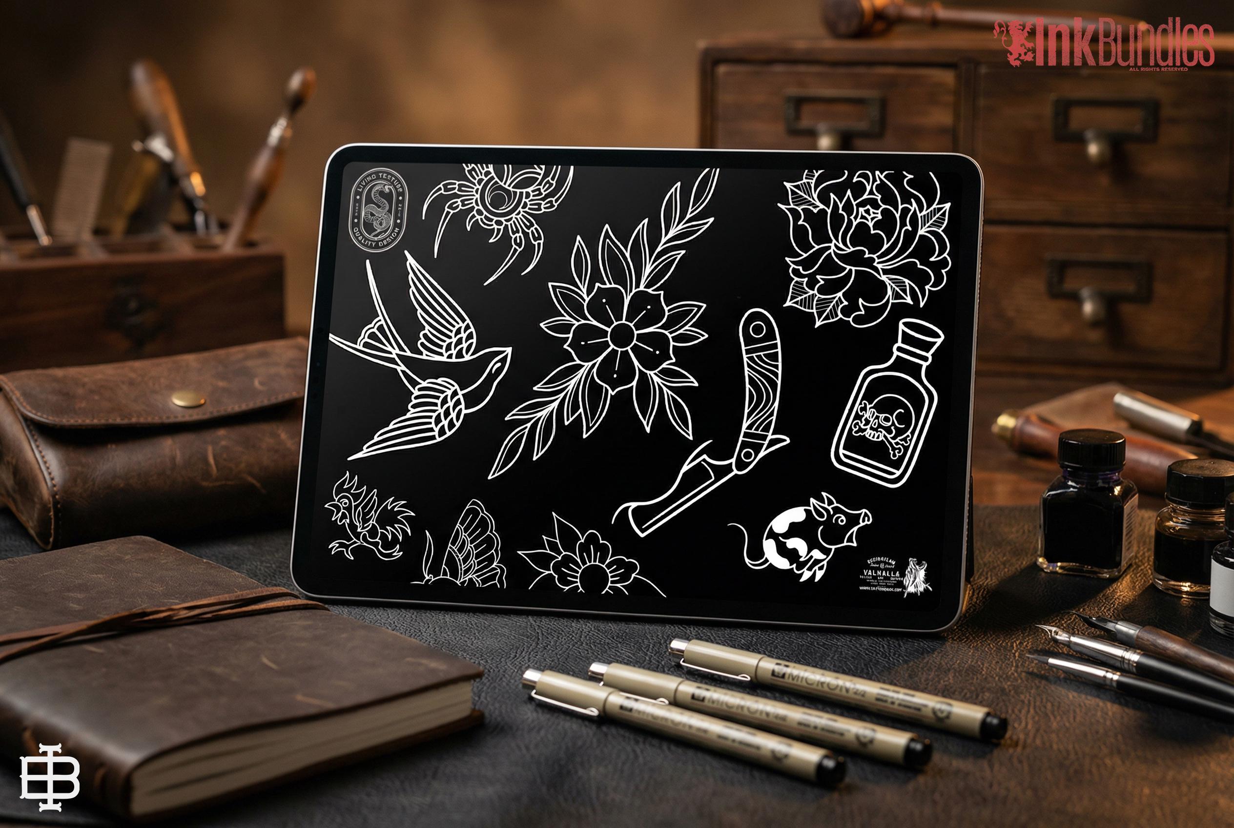 The Ultimate Traditional Tattoo Flash Design Kit Unlock endless creative possibilities with this massive bundle of over 300 traditional tattoo flash designs. Carefully curated to capture the bold, timeless aesthetic of old-school tattooing, this digital kit is a must-have for professional artists and hobbyists alike. Whether you are mapping out your next client's sleeve or simply looking for fun, classic coloring projects, these assets deliver high-quality, crisp line work every time.